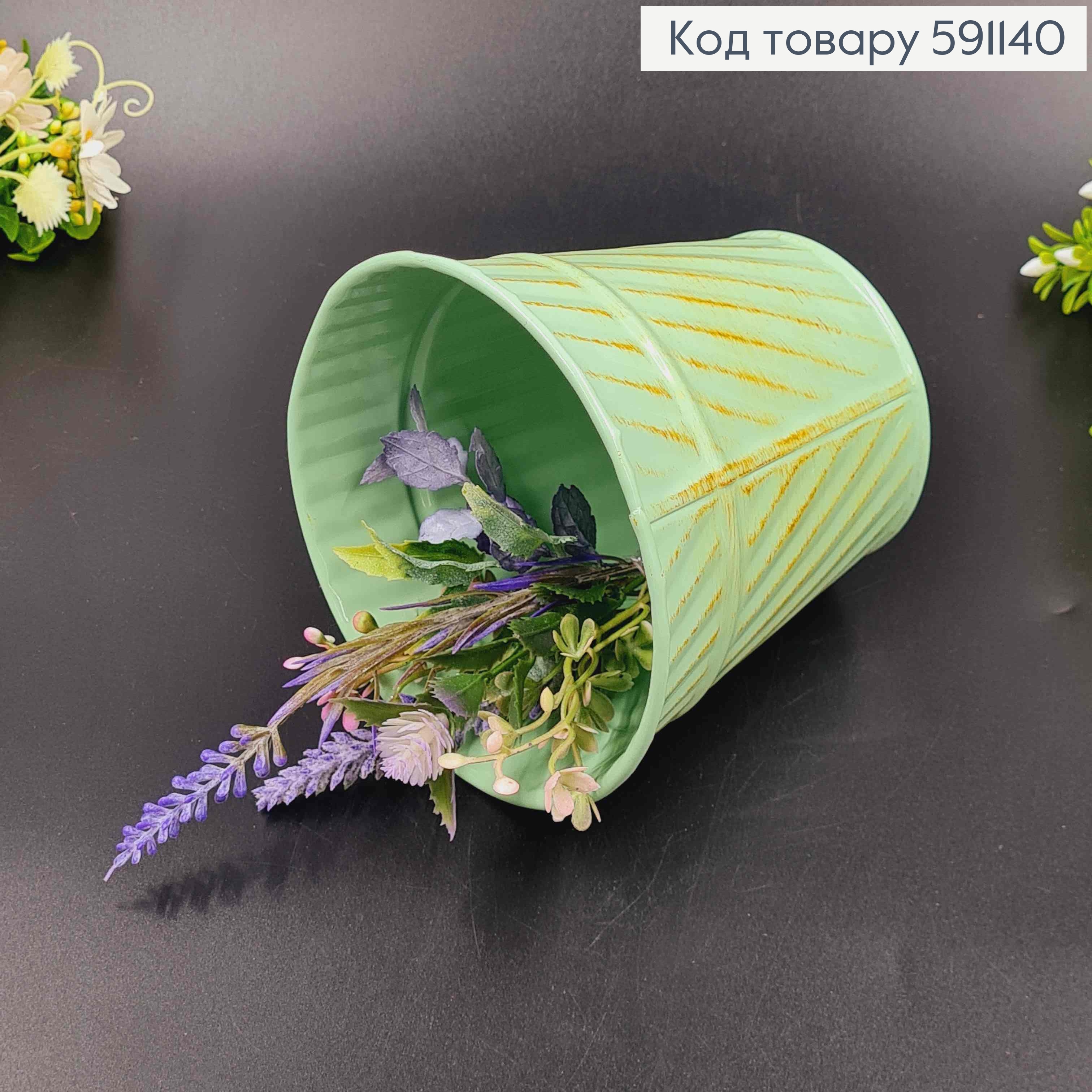 Кашпо-відерце металеве, фарбоване "Лаванда", глибина 10см, діаметр 13см 591367 фото