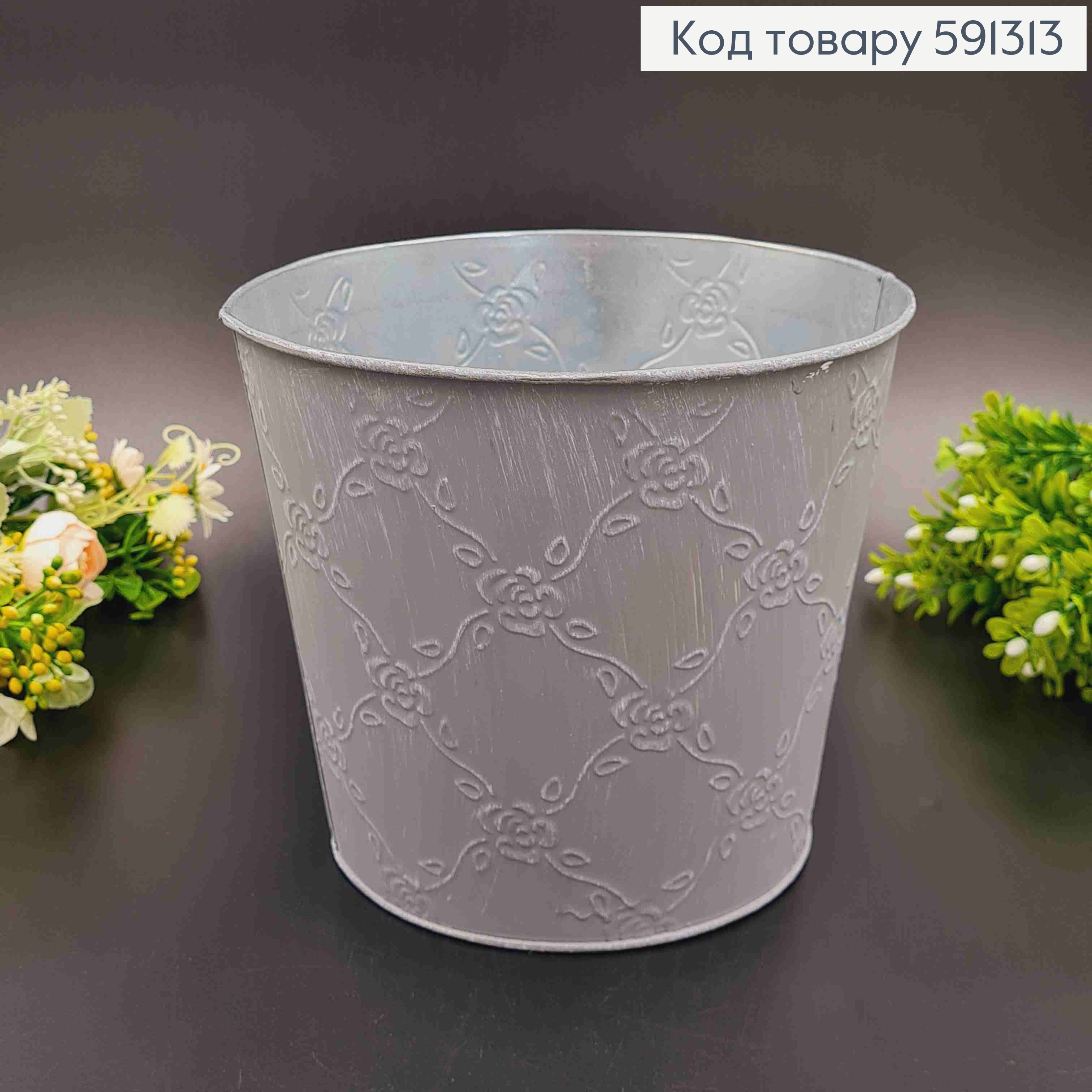Відерце-кашпо, метал, сірого кольору, з візерунком, висота 16см, Польща