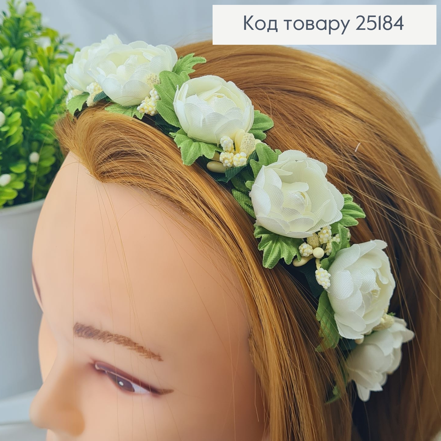 Обруч-віночок, плетений,  Троянди з Калиною, КРЕМОВОГО кольору, ручна робота, Україна 287045 фото