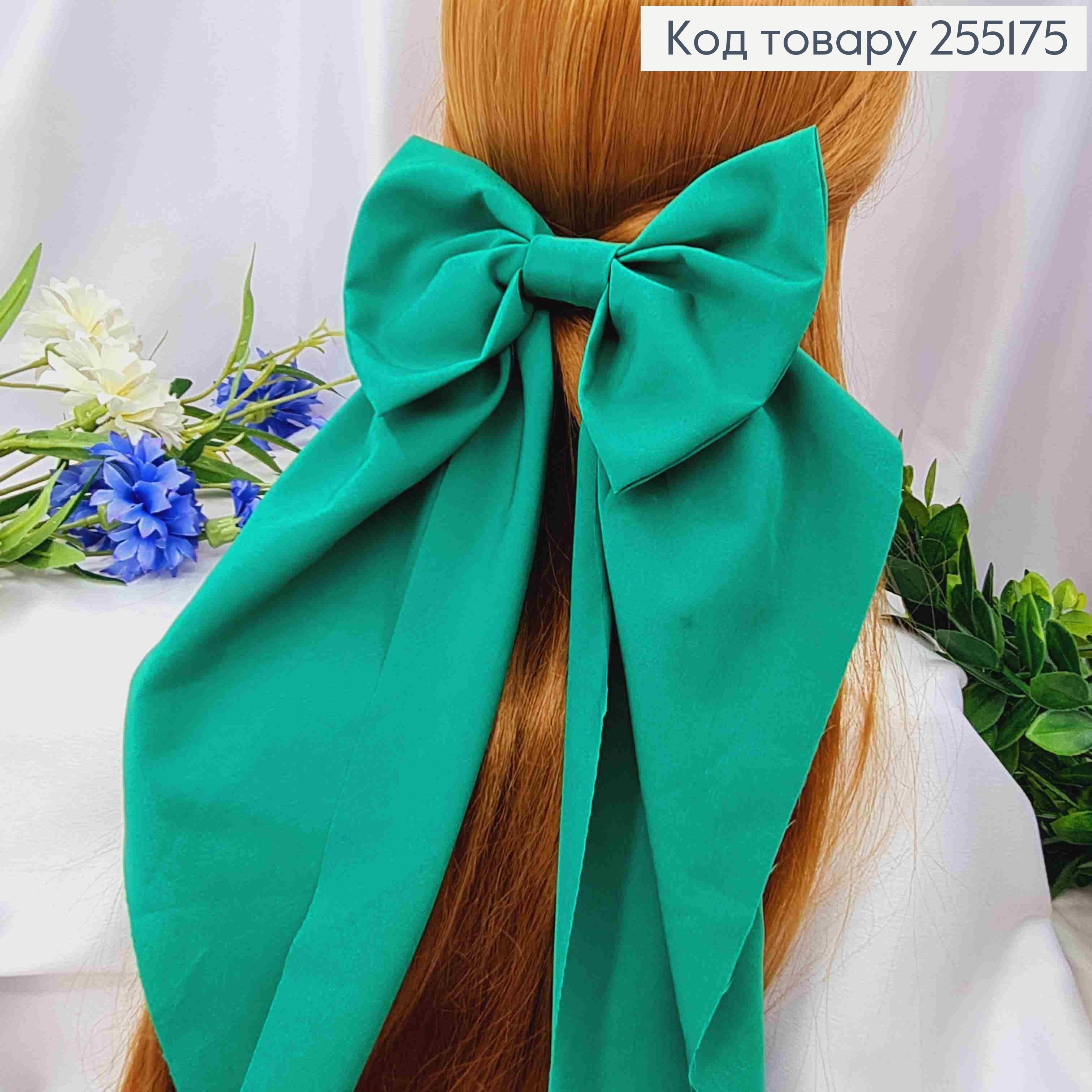 Заколка (7,5см) БАНТ ЗЕЛЕНОГО кольору, тканина стрейч котон, розмір 14,5*36см, Україна