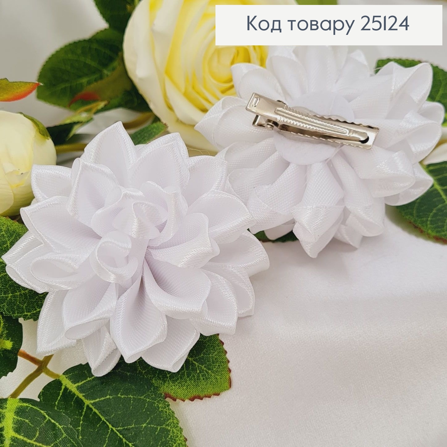 Заколка стріла біла атласна об"ємна квітка "Хризантема" 6 см, ручна робота Україна