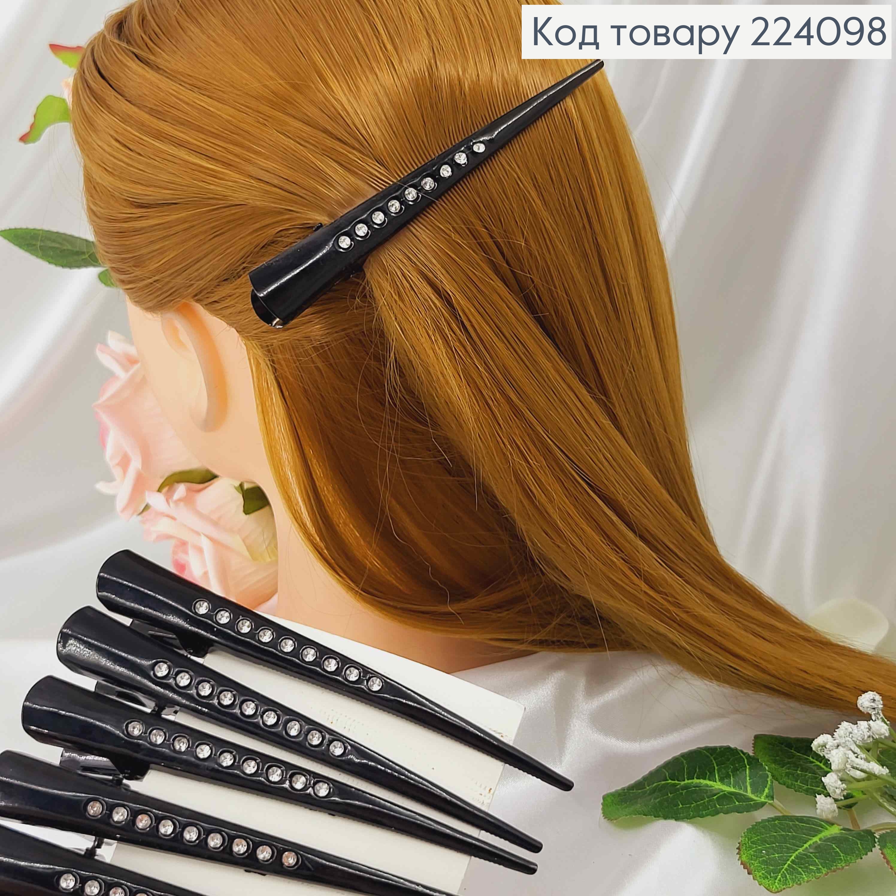 Набір: заколка на зажимчику з Блискучими та Чорними камінцями в асортименті, 3см, Чорного кольору 233152 фото