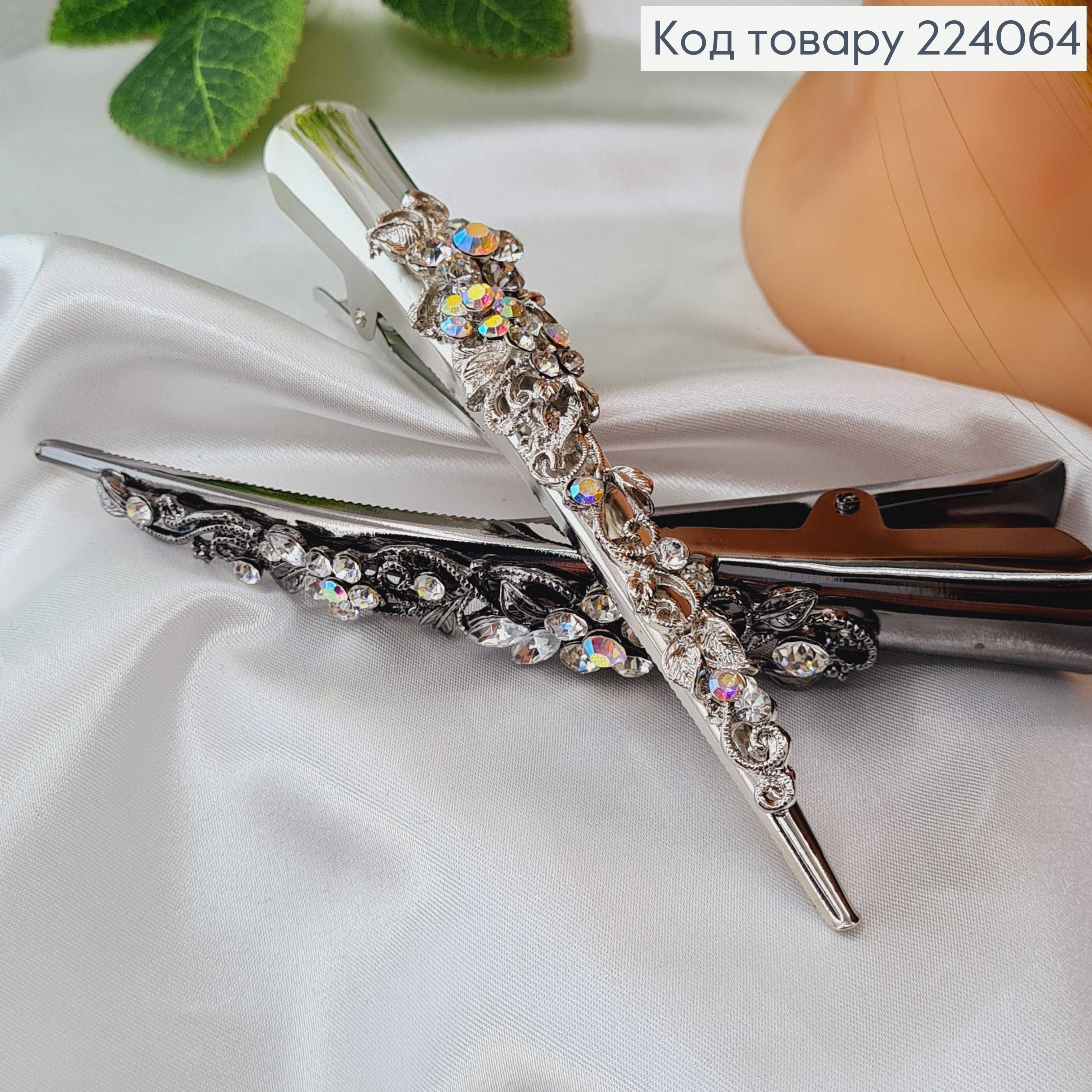 Заколка на зажимчику "Бантик" з Блискучими та камінцями Хамелеон в асорт., Срібного кольору, 5,5см 233150 фото