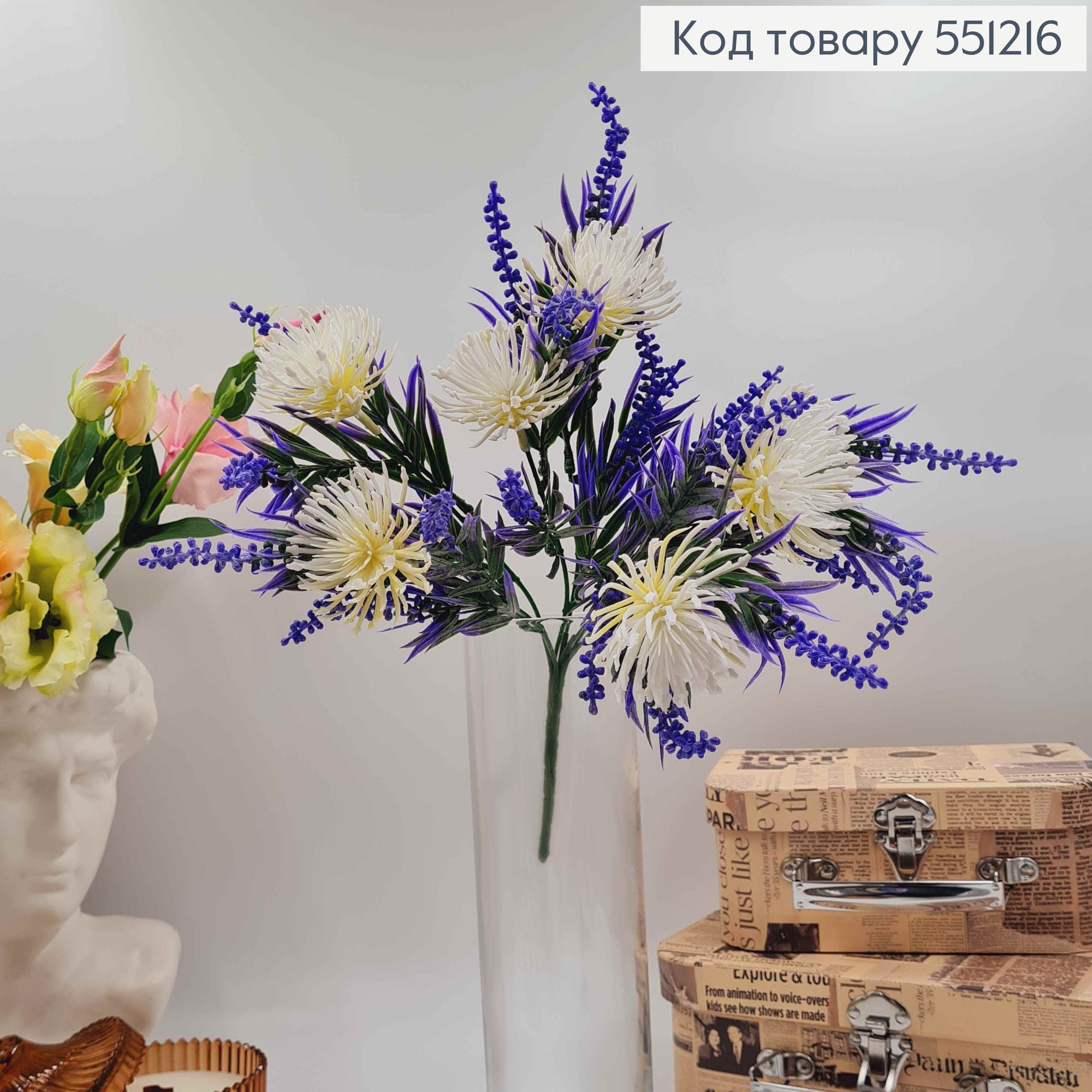 Композиция декоративная "Букет ЛАВАНДА с МОЛОЧНОЙ хризантемой КУШАН", высота 37см