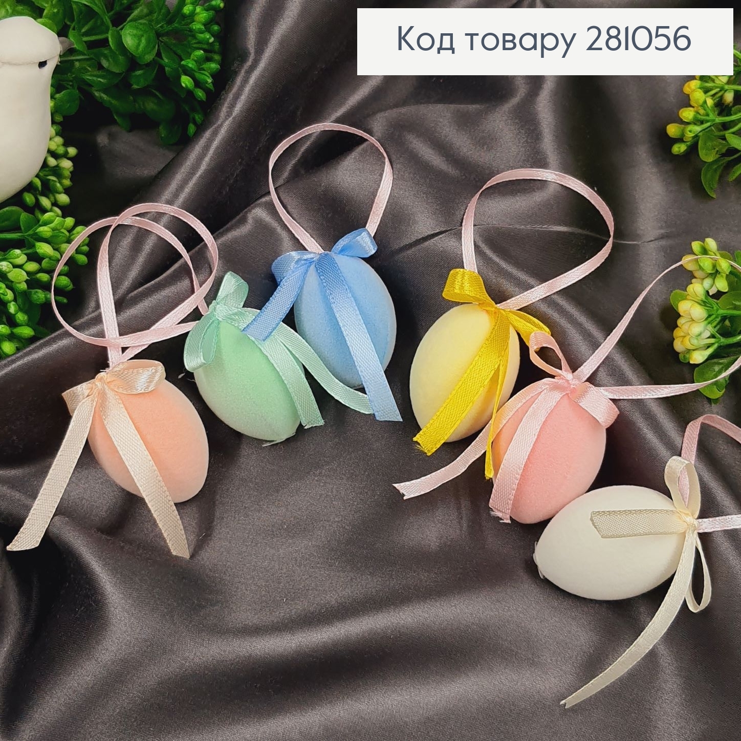 Набор Яиц (6шт/уп), РАЗНОЦВЕТНЫЕ с Пенопластовой крошкой с Бантиком на подвеске, 6*4см 282197 фото