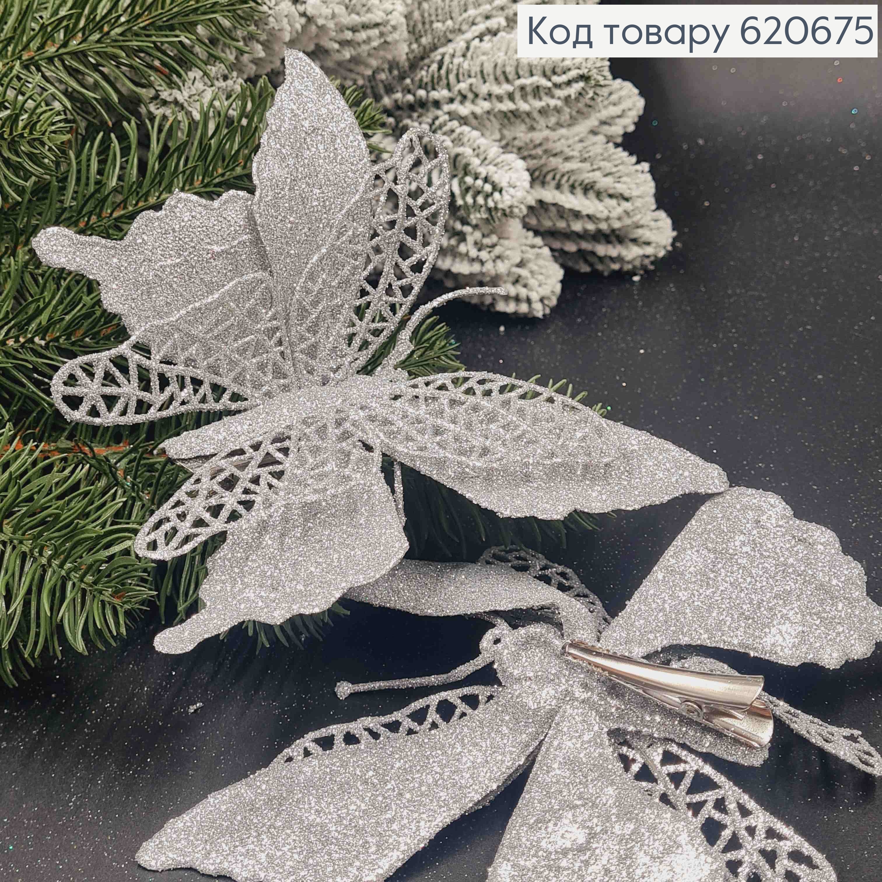 Елочное украшение Бабочка на заколке, Белого цвета+Блеск, 21*17см 620761 фото