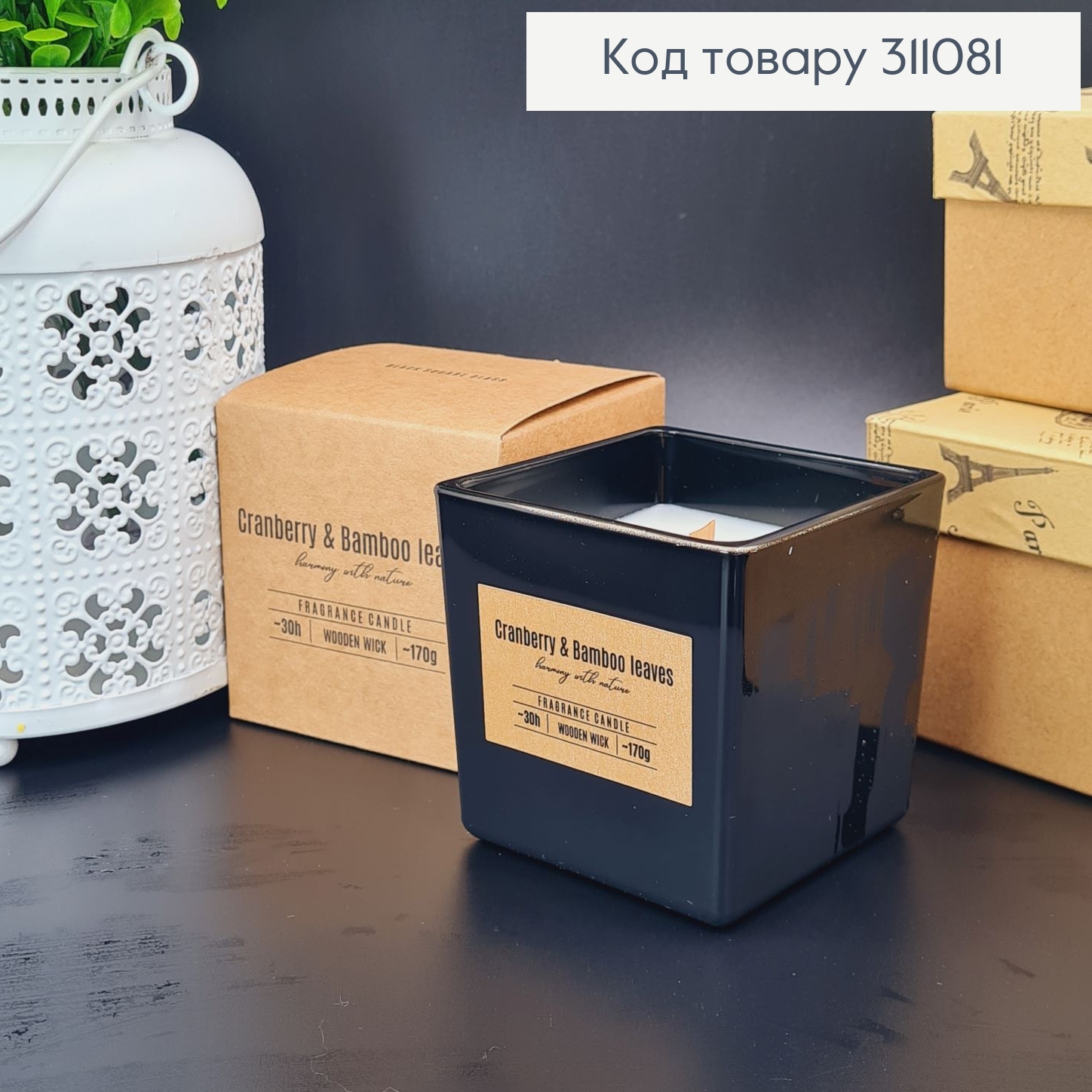 Аромасвеча стакан BISPOL Листья Клюкви и Бамбука с деревяным гнотом 170г/30часов, 80-095-351