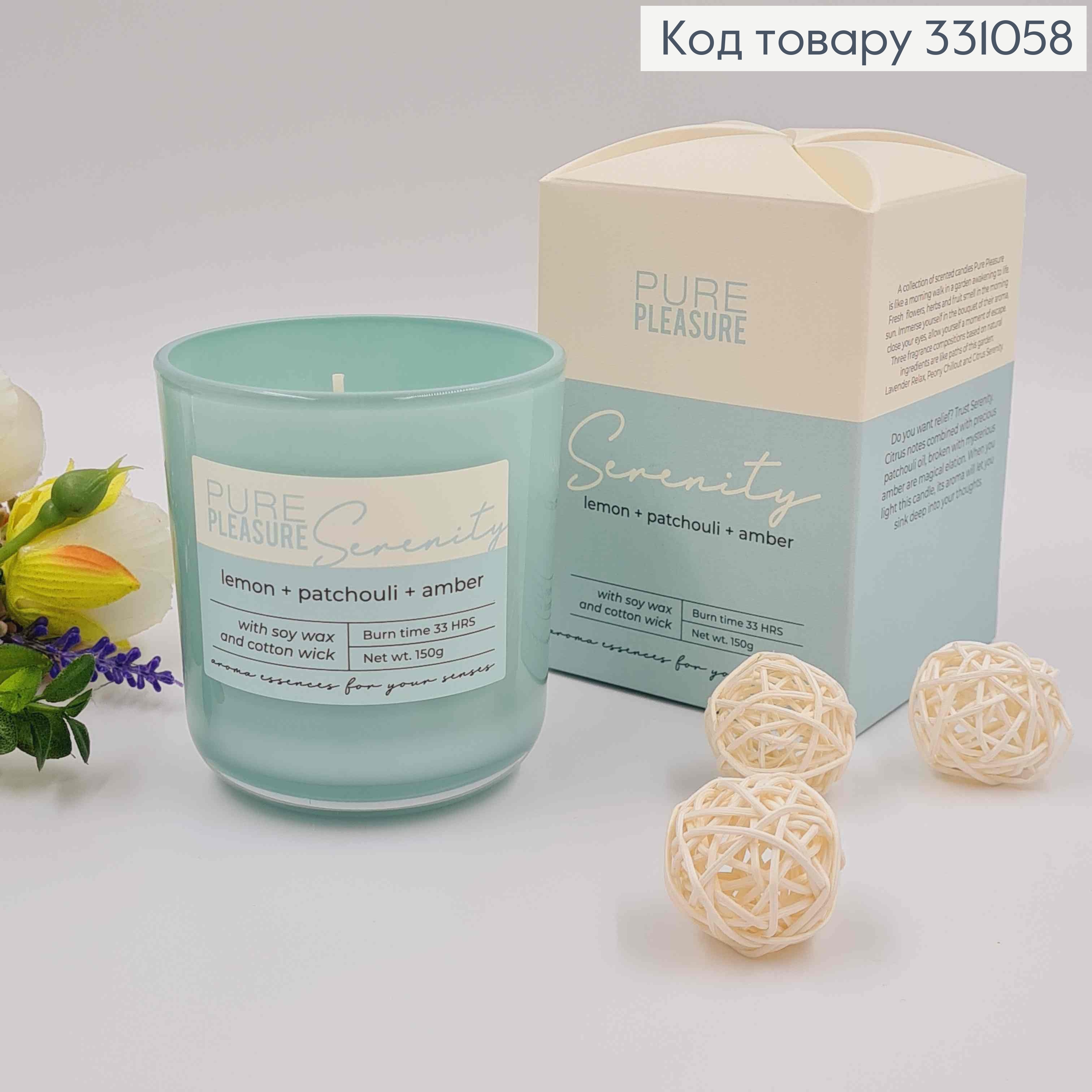 Аромасвечка стакан СОЕВА, Serenity (lemon+patchuli+amber), 150г/33 часа горения, Польша