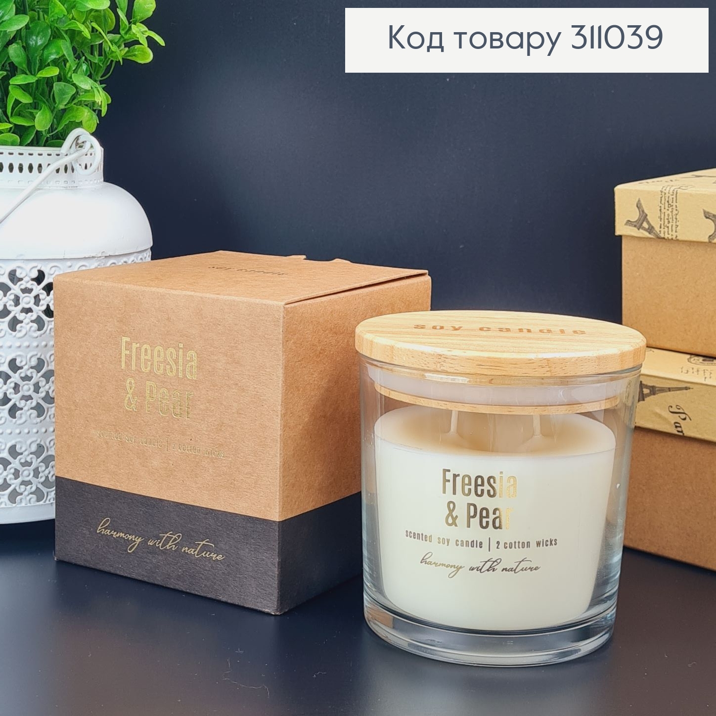 Аромасвеча соевая в банке с двома фетилями Фрезия и Жемчужина,300гр., 40год.Bispol sn173-326