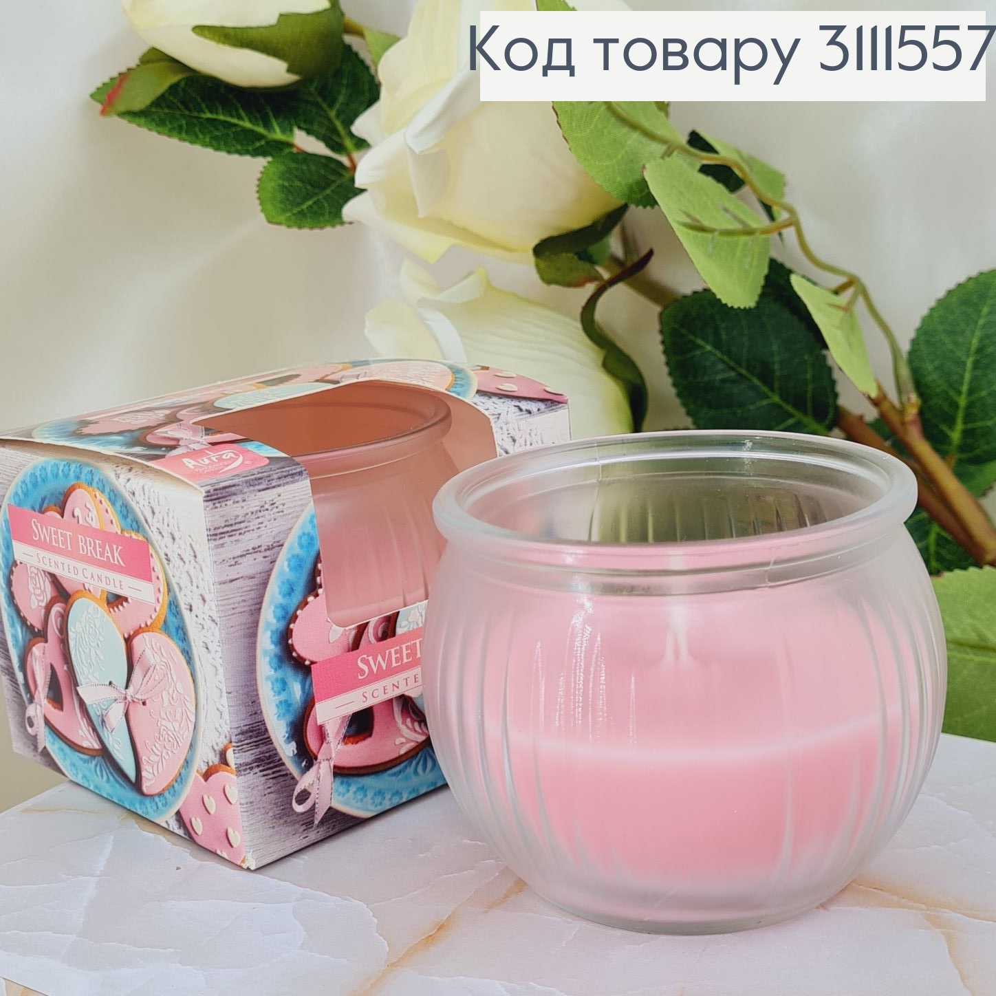 Арома свеча стакан AURA "Pink flowers", 80 г/18 часов, sn69-367 312080 фото