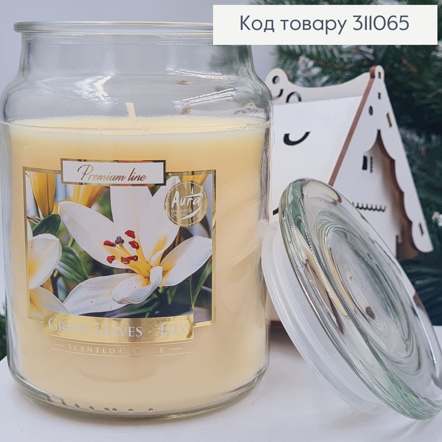 Аромасвечка в банке BISPOL Зеленое листья Лилия 500 г/ 100 часов горения
