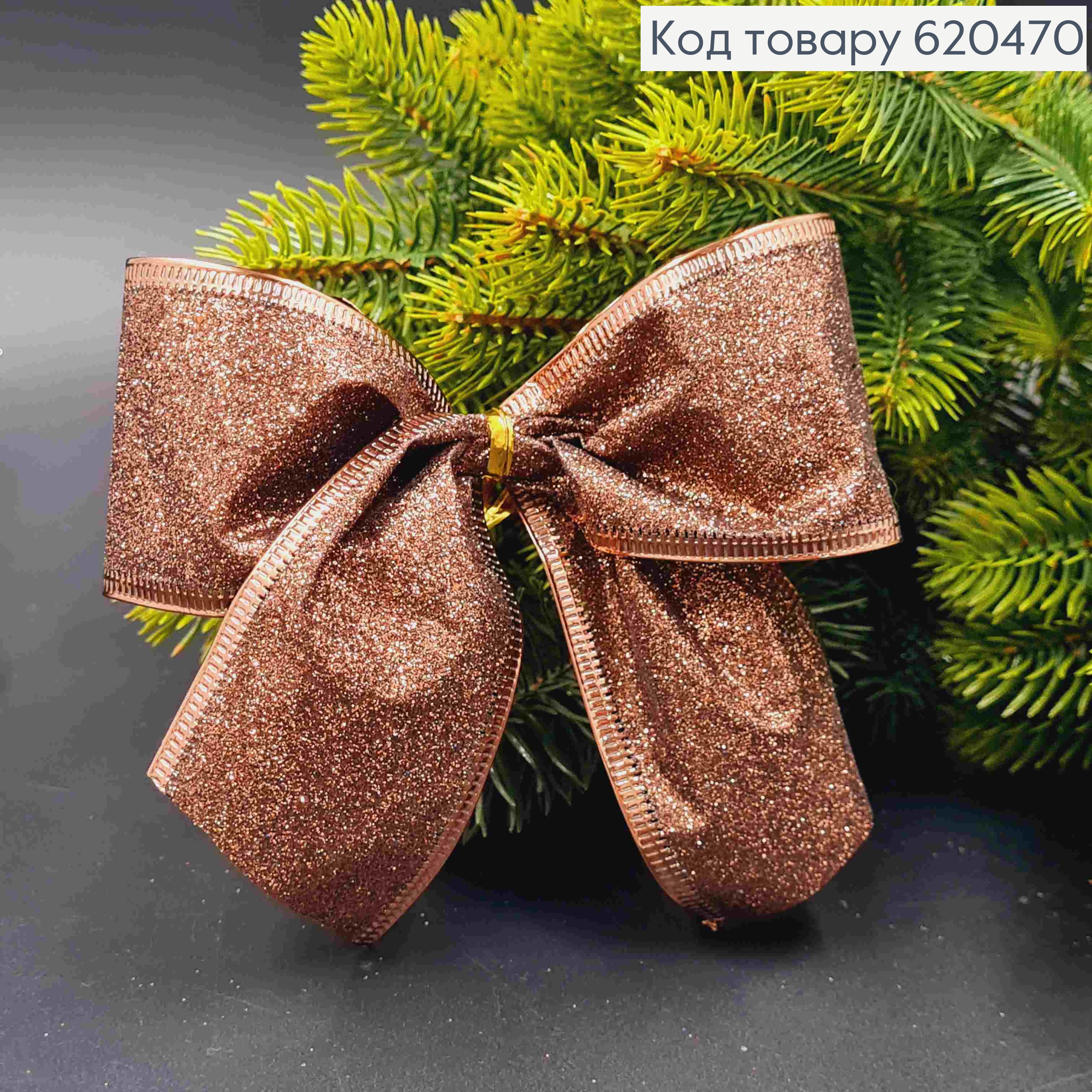 Бант новогодний с блеском ШОКОЛАДНЫЙ 11*12см (5см лента), ручная работа, Украина.
