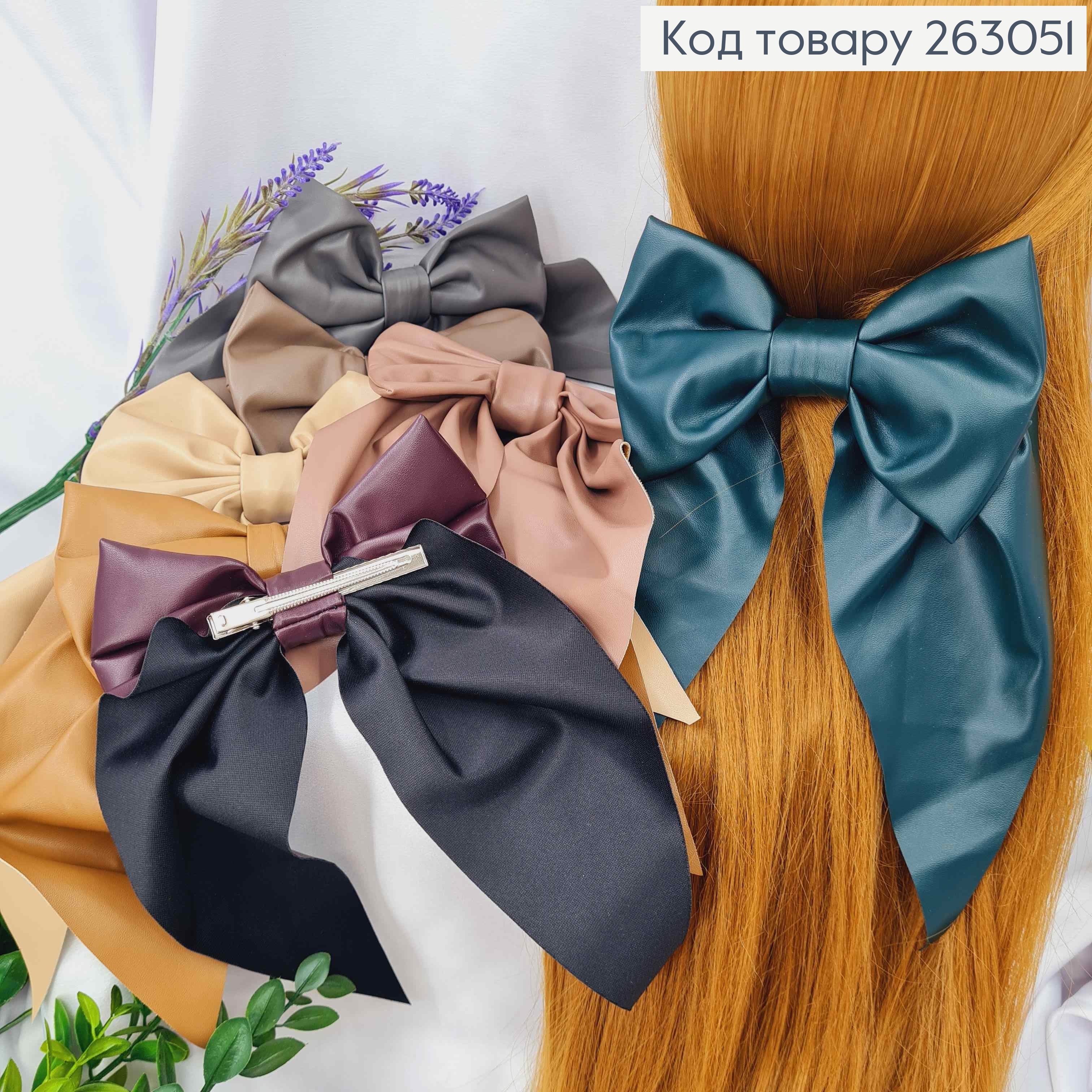 Бант из эко-кожи Цвет в ассортименте на заколке, размер 15*23см, Украина