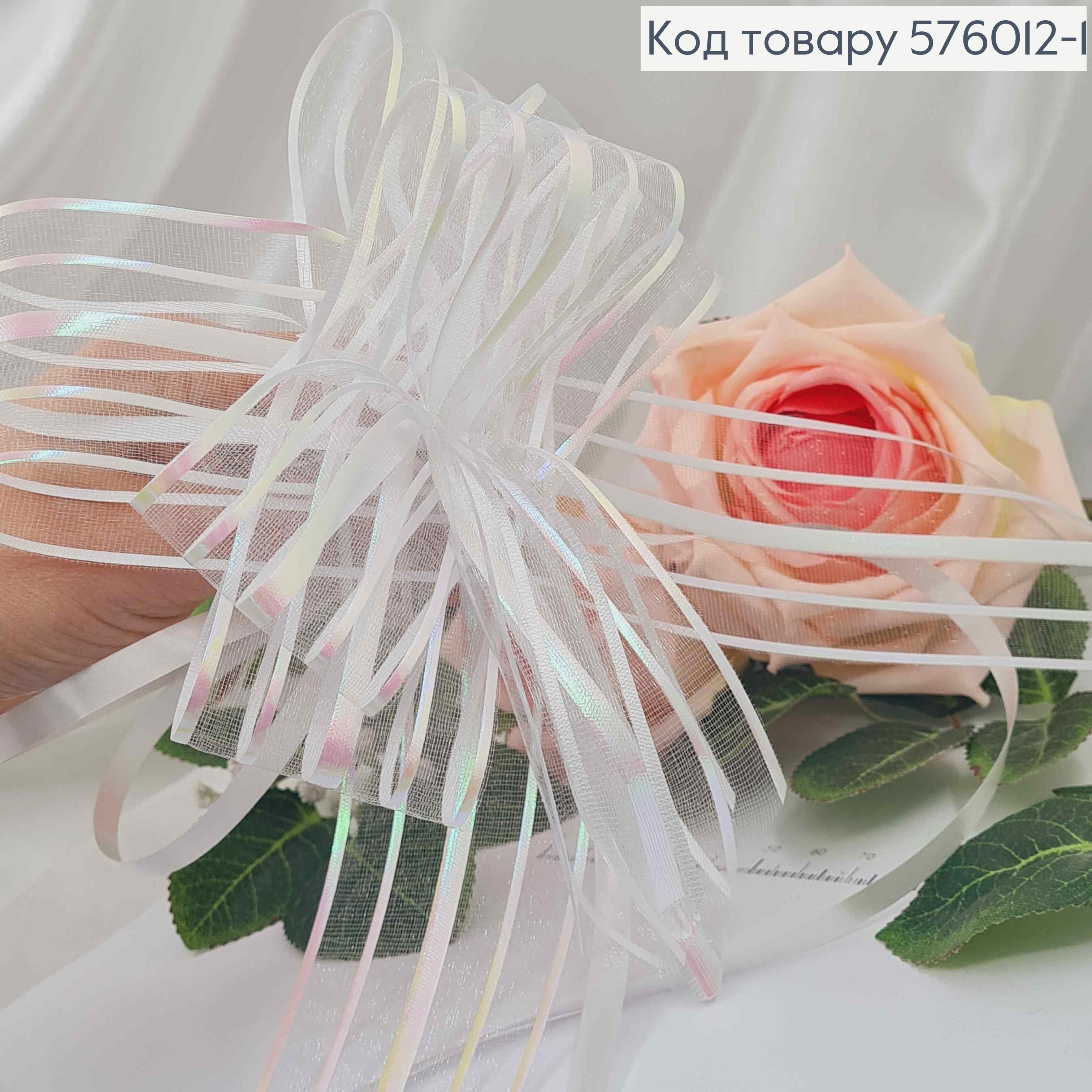 Бант-затяжка для подарков(10шт), Белого цвета(голографический), шир. 5см, в сложенном виде 16см.
