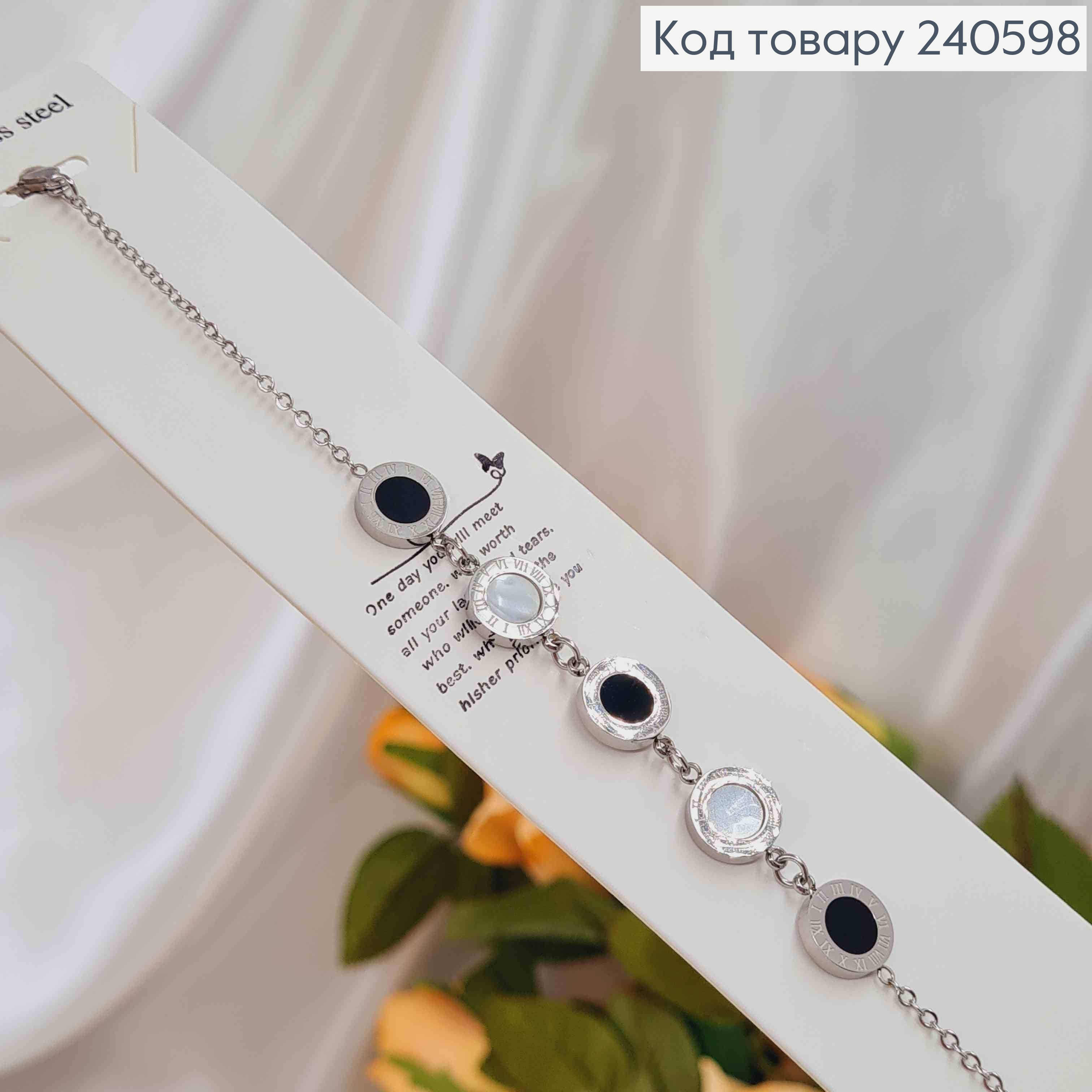 Браслет 16+4см Римские часы, с черной и белой эмалью, цвет серебряный, Stainless Steel