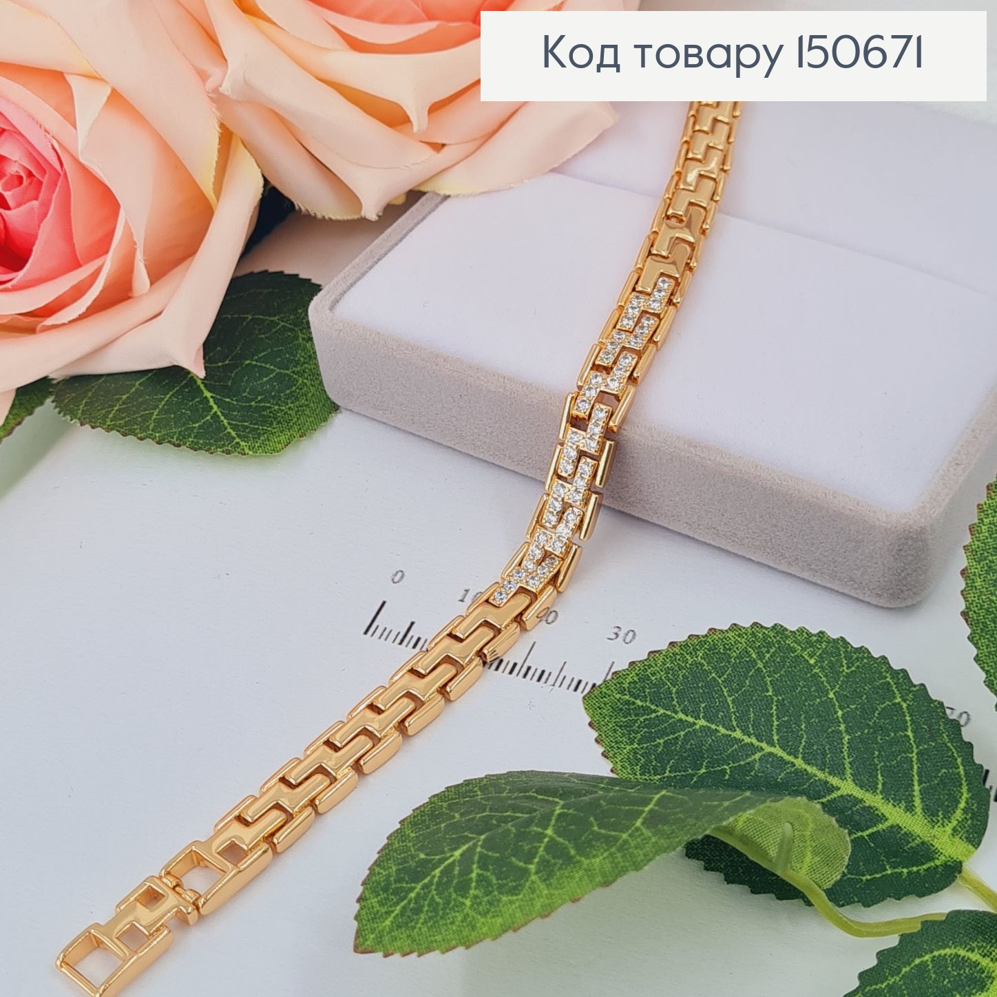 Браслет плетения фигурными пластинками в Блестящих камнях, длина 17+2см, Xuping 18K 151293 фото