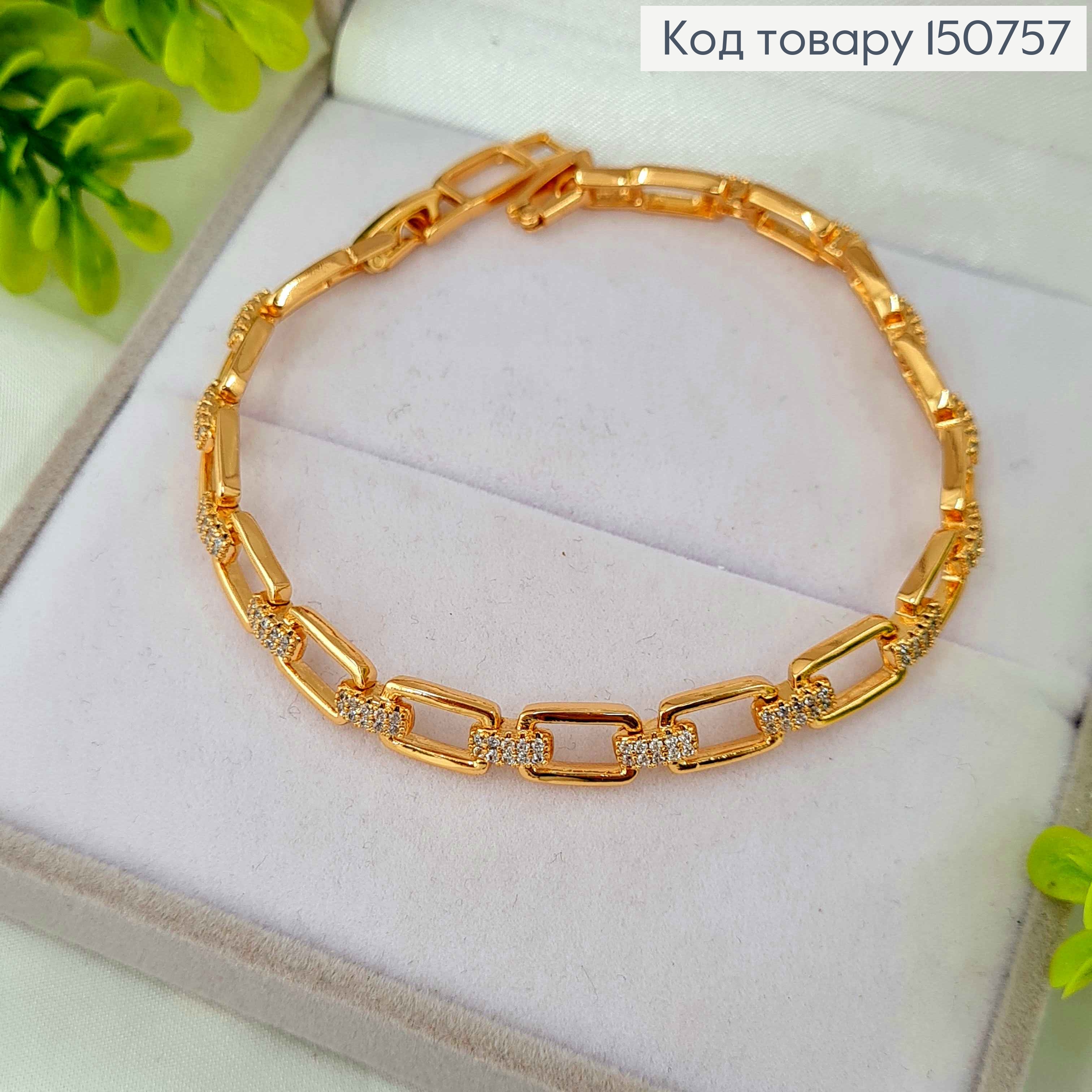 Браслет из овальных пластин украшен блестящими камешками, длина 17+2,5см, Xuping 18К. 151288 фото