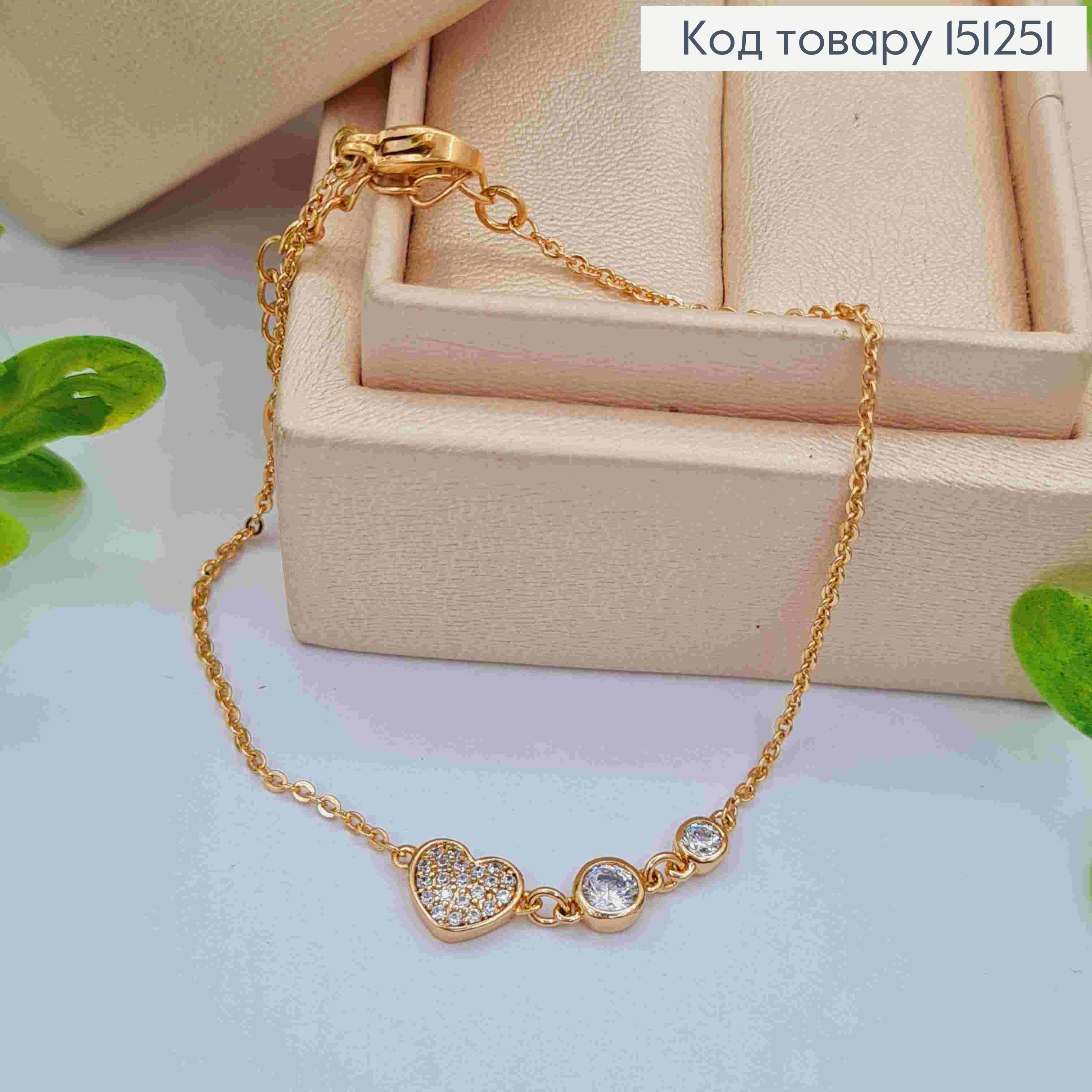 Браслет ЯКОРНОЕ плетение с Сердцем в блестящих камнях, длина 17+4см, Xuping 18К