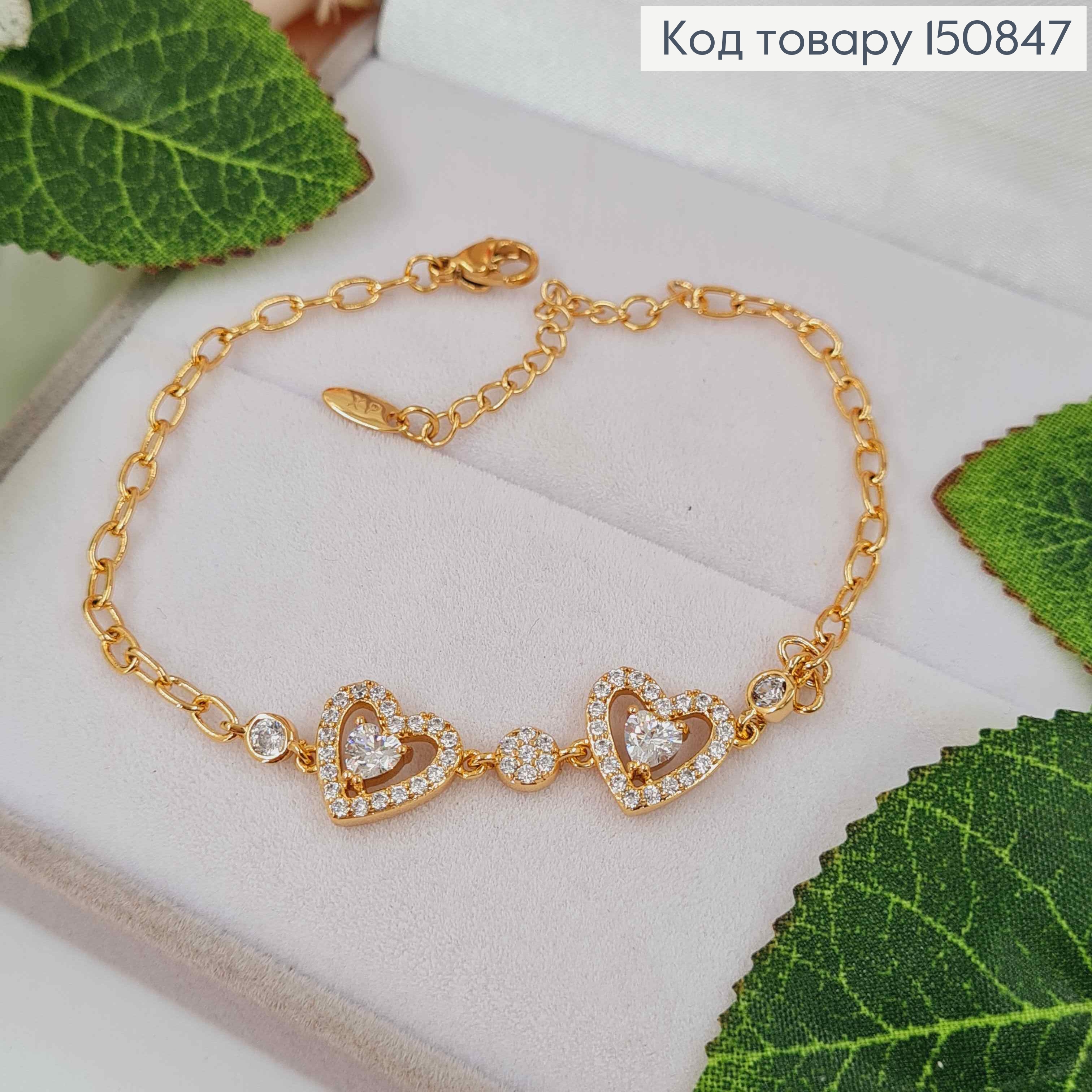 Браслет "Два сердечка" в камнях, с двумя камешками в оправе, дл. 17+4см, Xuping 18К
