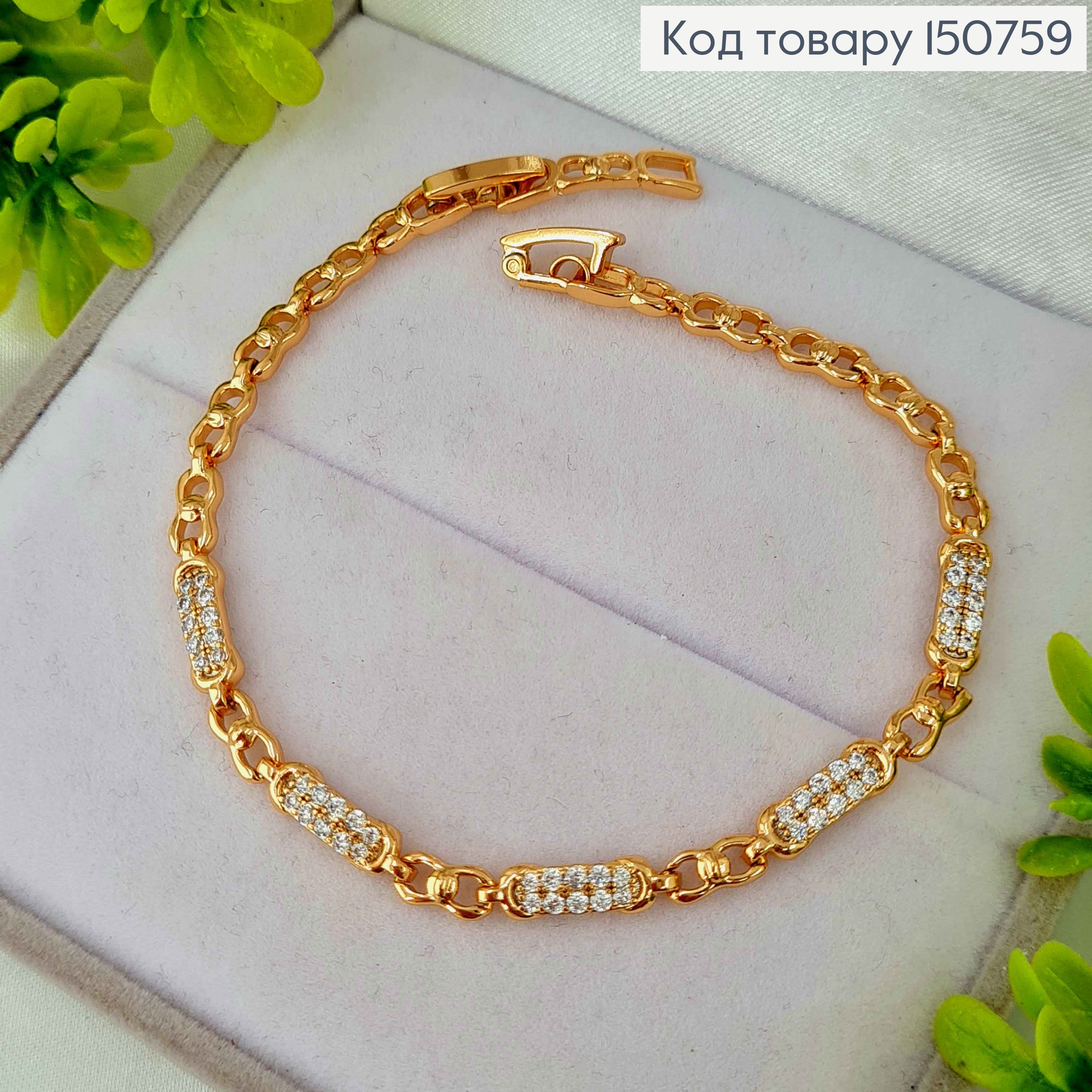 Браслет из овальных пластин украшен блестящими камешками, длина 17+2,5см, Xuping 18К. 151288 фото