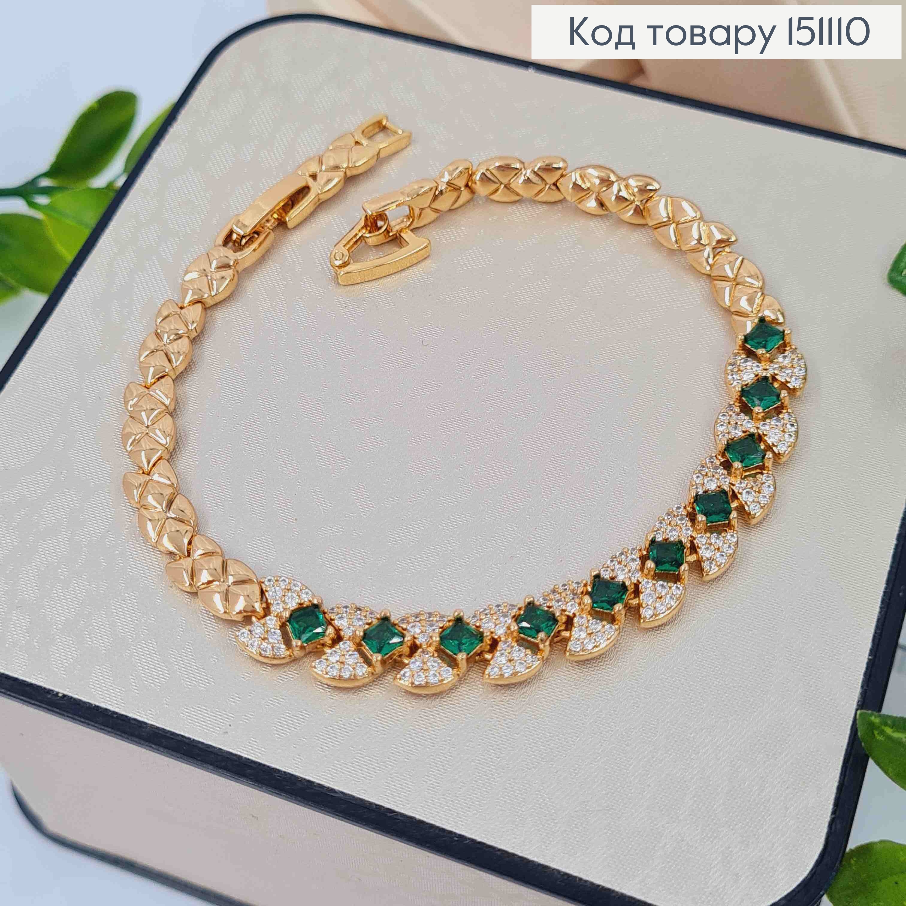 Браслет "ГРАЦИЯ" с Зелеными камешками, длина 17+2,5см, Xuping 18K
