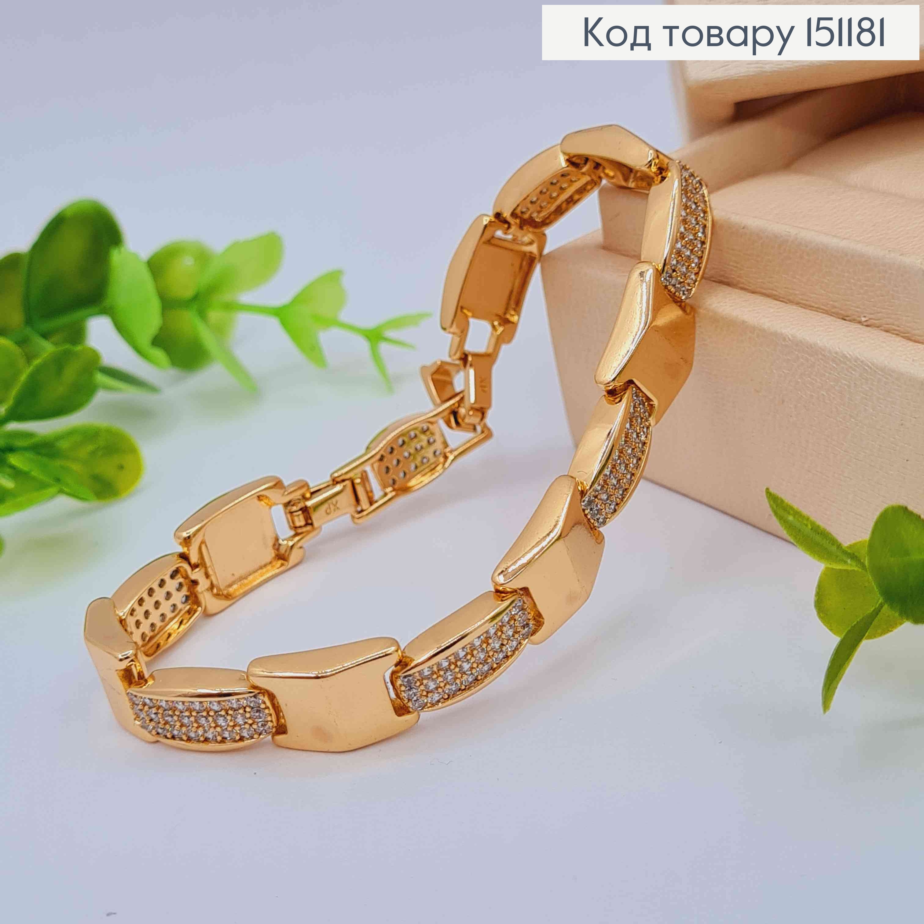 Браслет плетения фигурными пластинками в Блестящих камнях, длина 17+2см, Xuping 18K 151293 фото