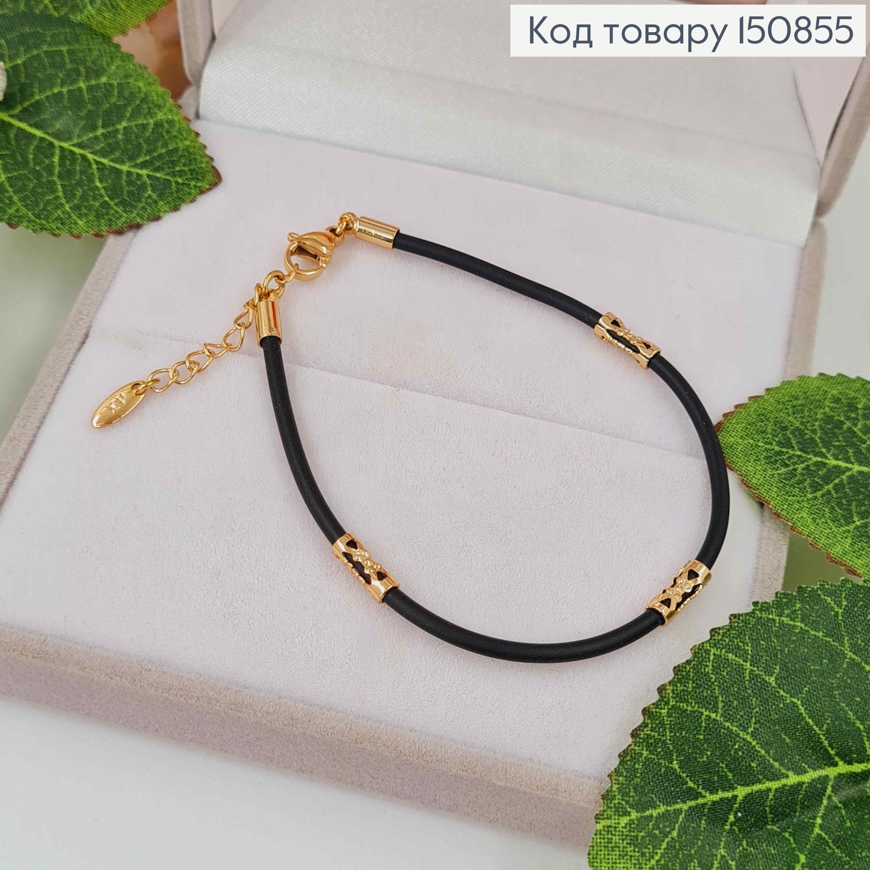 Браслет каучук с ажурными вставками, дл. 17+3см, шир. 2мм, Xuping 18К