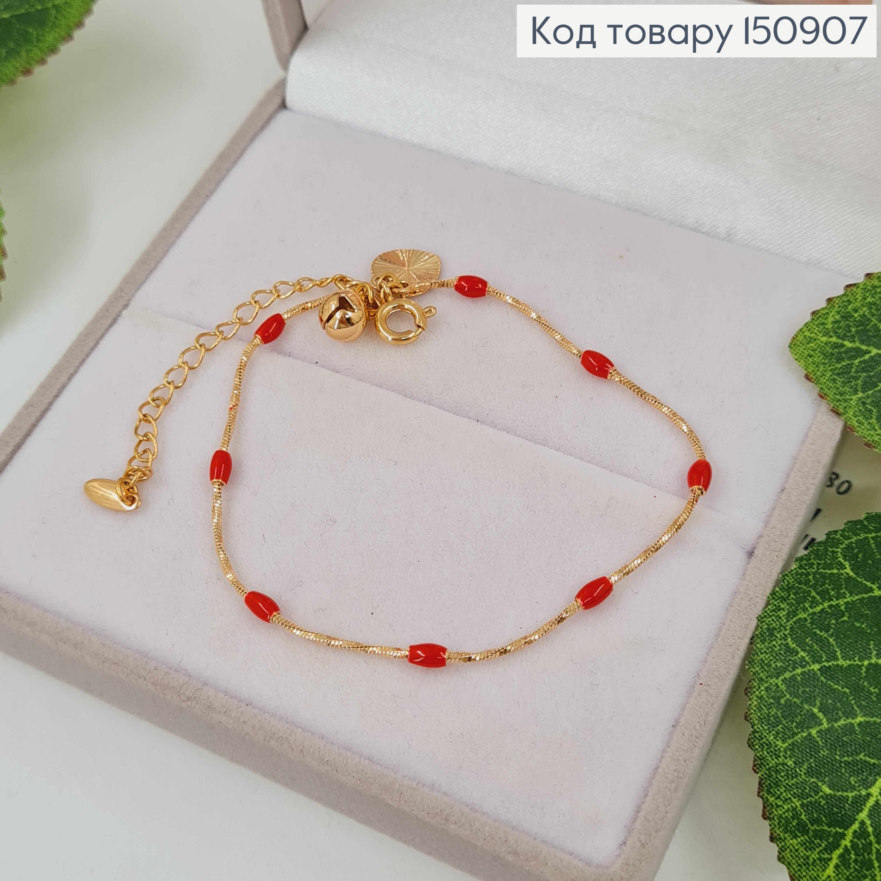 Браслет витое плетение, с красными литыми бусинками, дл. 17+5см, Xuping 18К