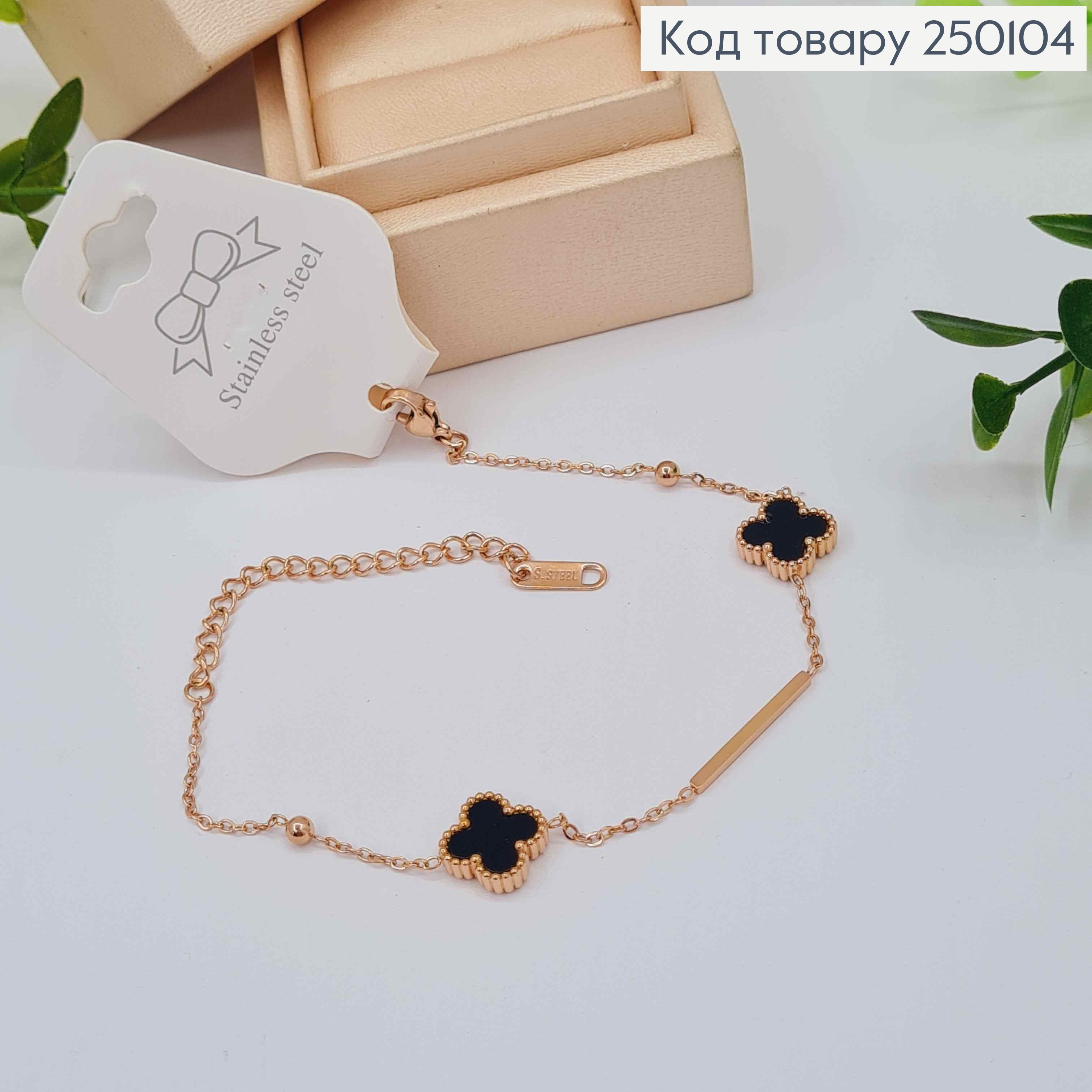 Браслет овальный медного цвета, Van Cleef с Черной эмалью, 18см, Stainless Steel 250134 фото