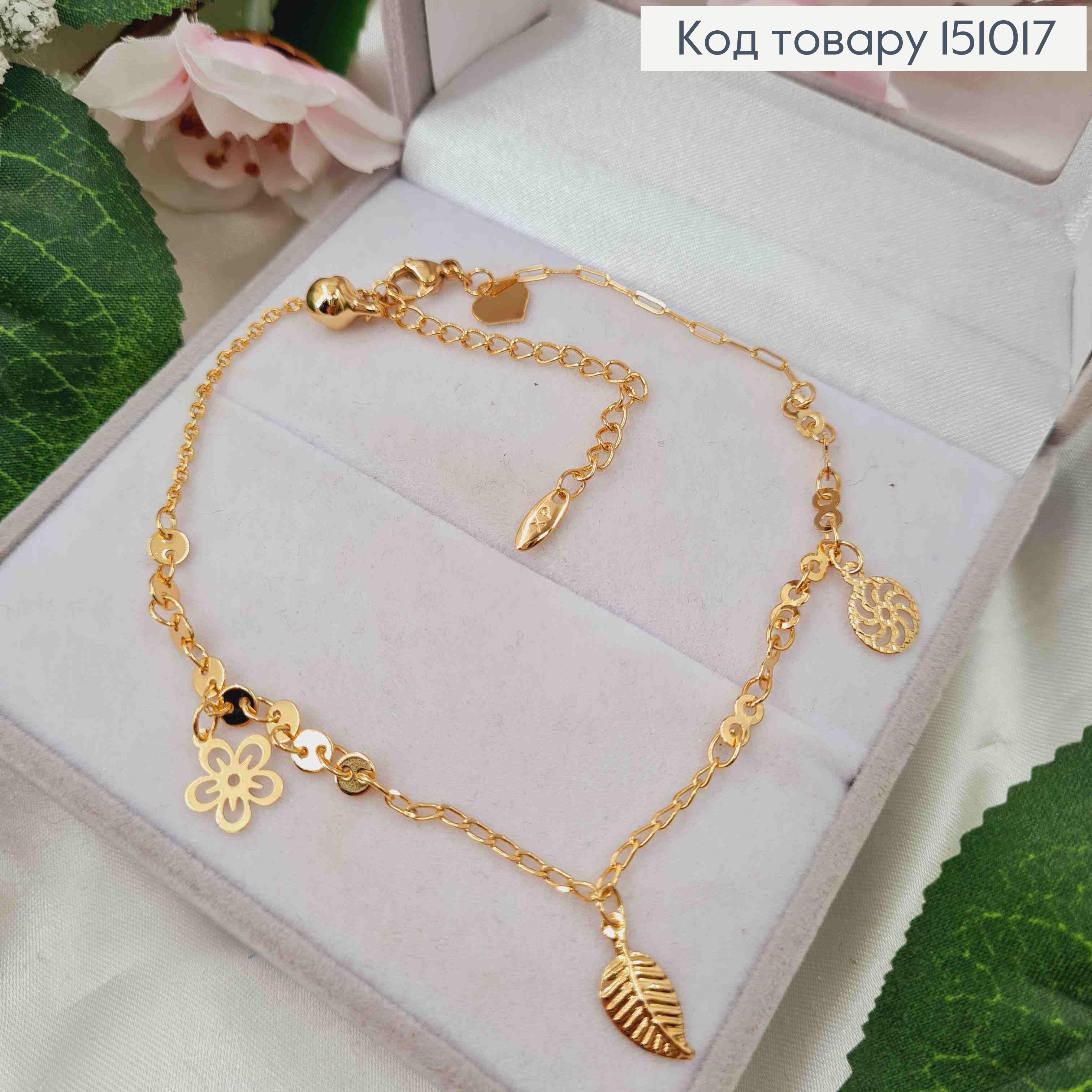 Браслет на ногу, якорное петление, Листочек+Цветочек+Солнышко, 24+5см, Xuping 18K