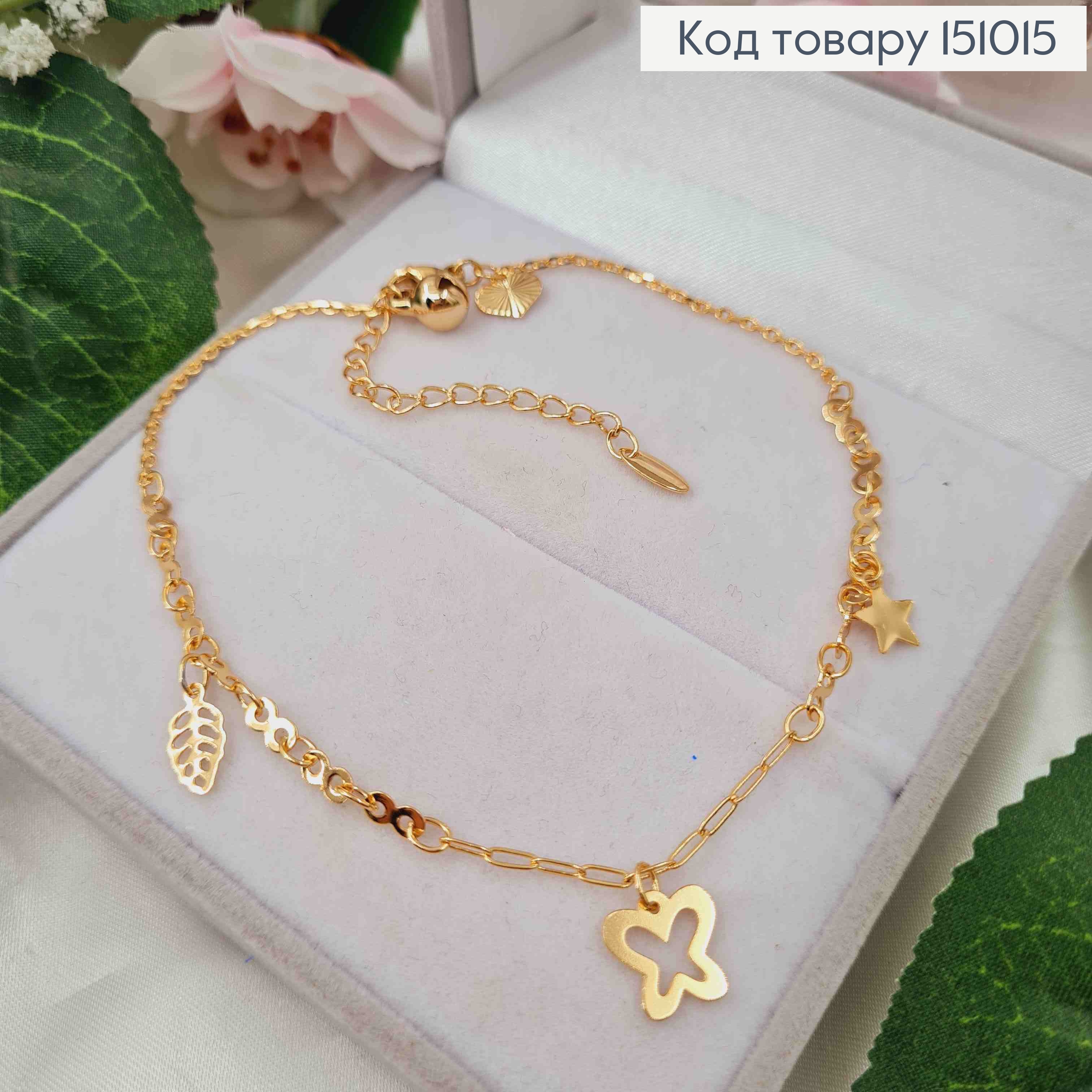 Браслет на ногу, якорное петление, Бабочка+Листочка+Звезда, 24+5см, Xuping 18K