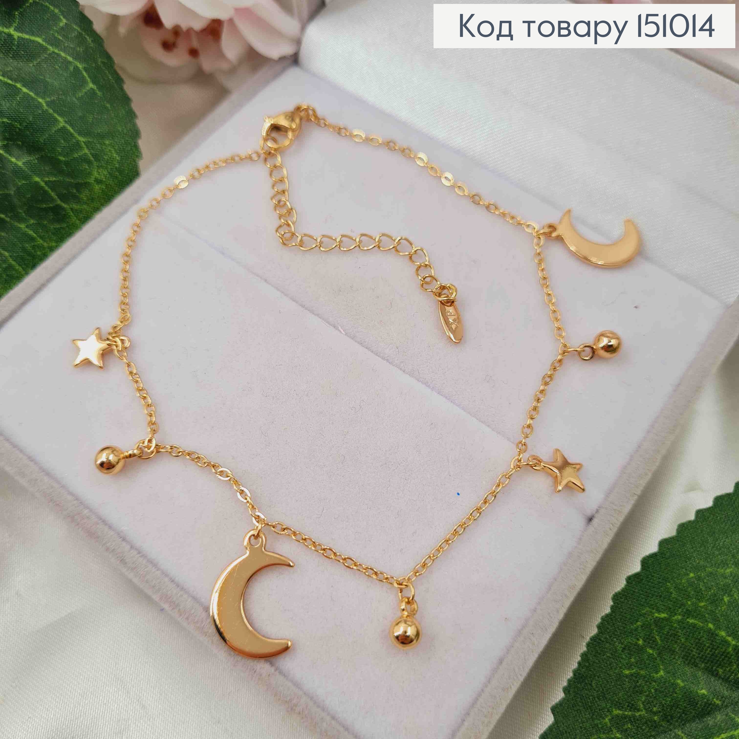 Браслет на ногу, якорное петление, Луна+Шарик+Звездочки, 22,5+5см, Xuping 18K