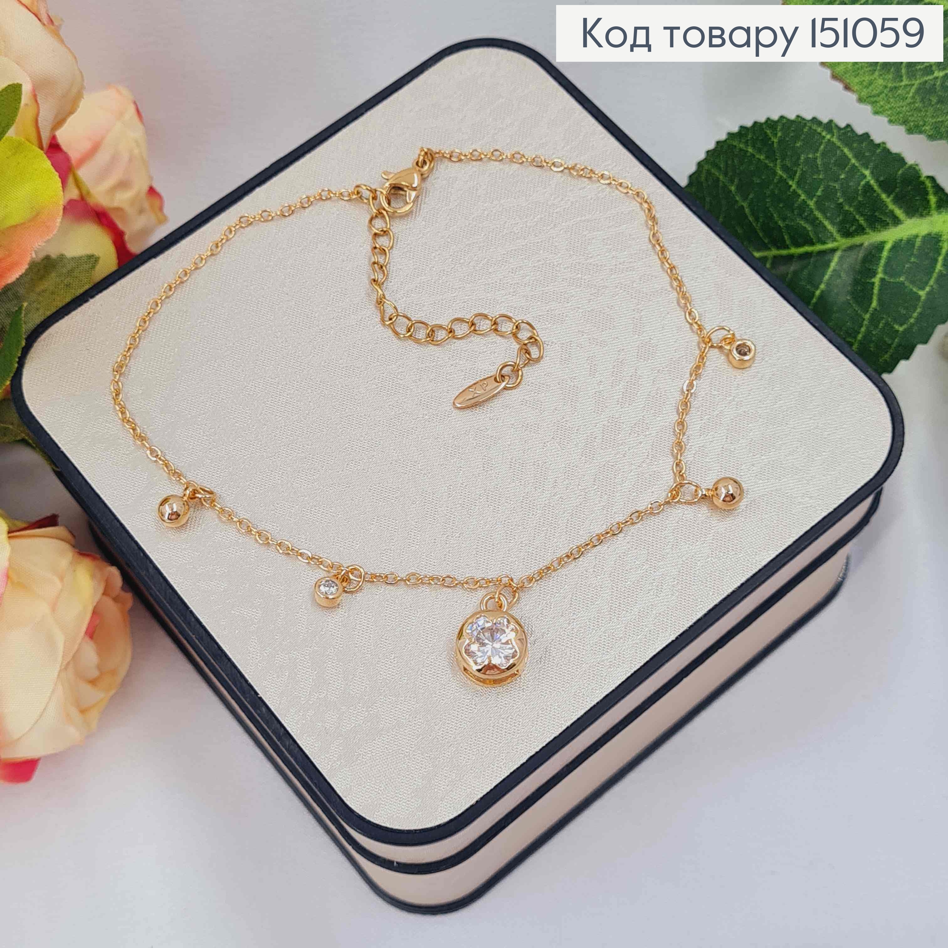 Браслет на ногу с шариками, длина 23+5см, Xuping 18К. 151286 фото