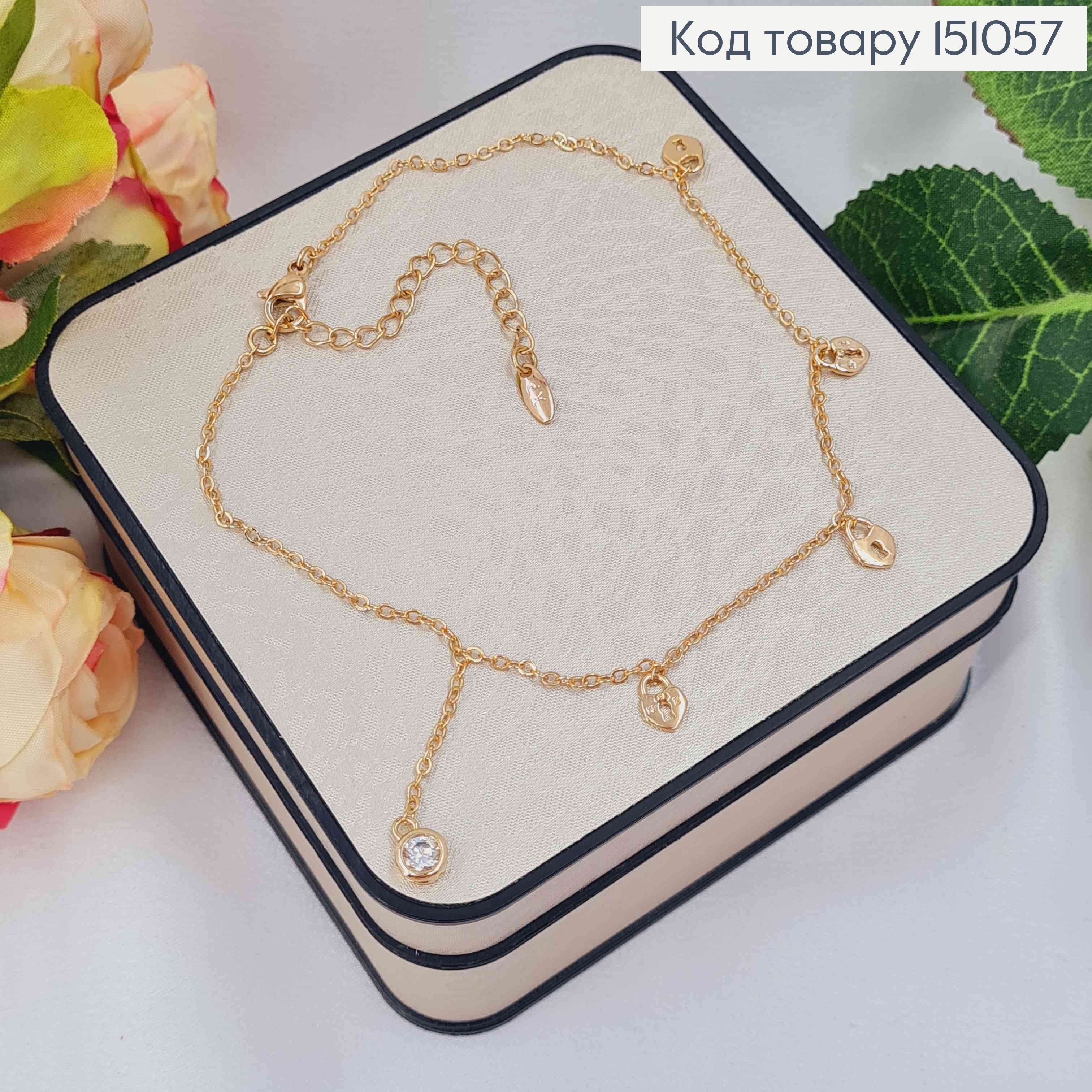 Браслет на ногу, якорное петление, с подвесками Замок+Камешок в оправе, 23+5см, Xuping 18K