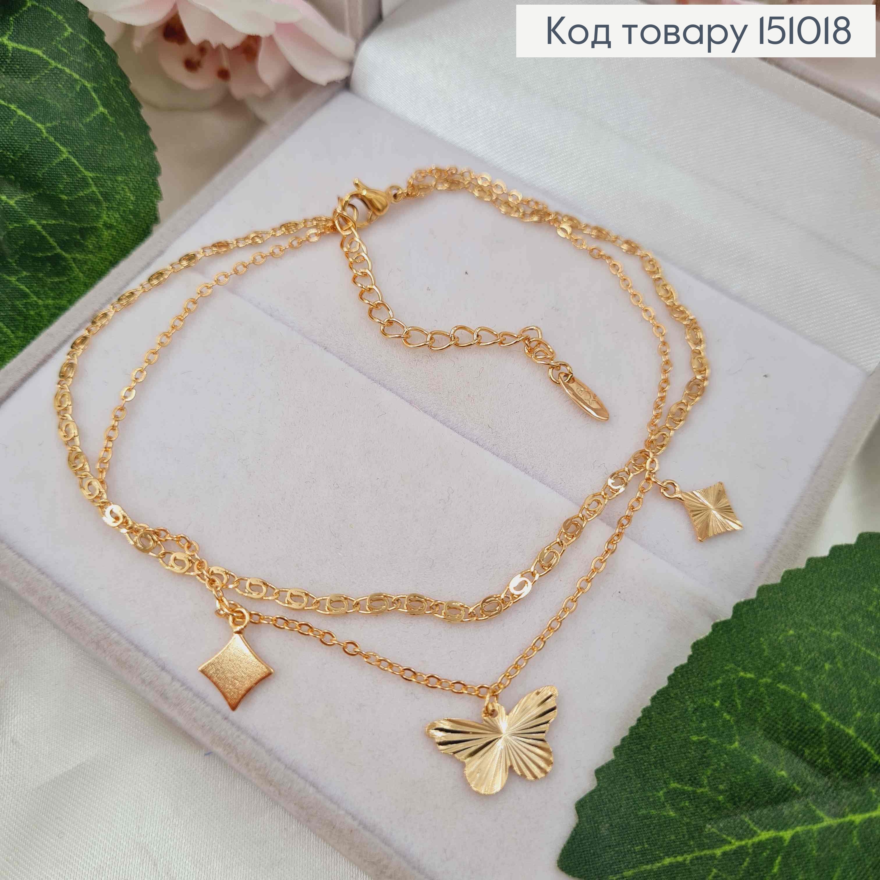 Браслет на ногу, якорное+улиточное петление, Бабочка+Ромбик, 22+5см, Xuping 18K