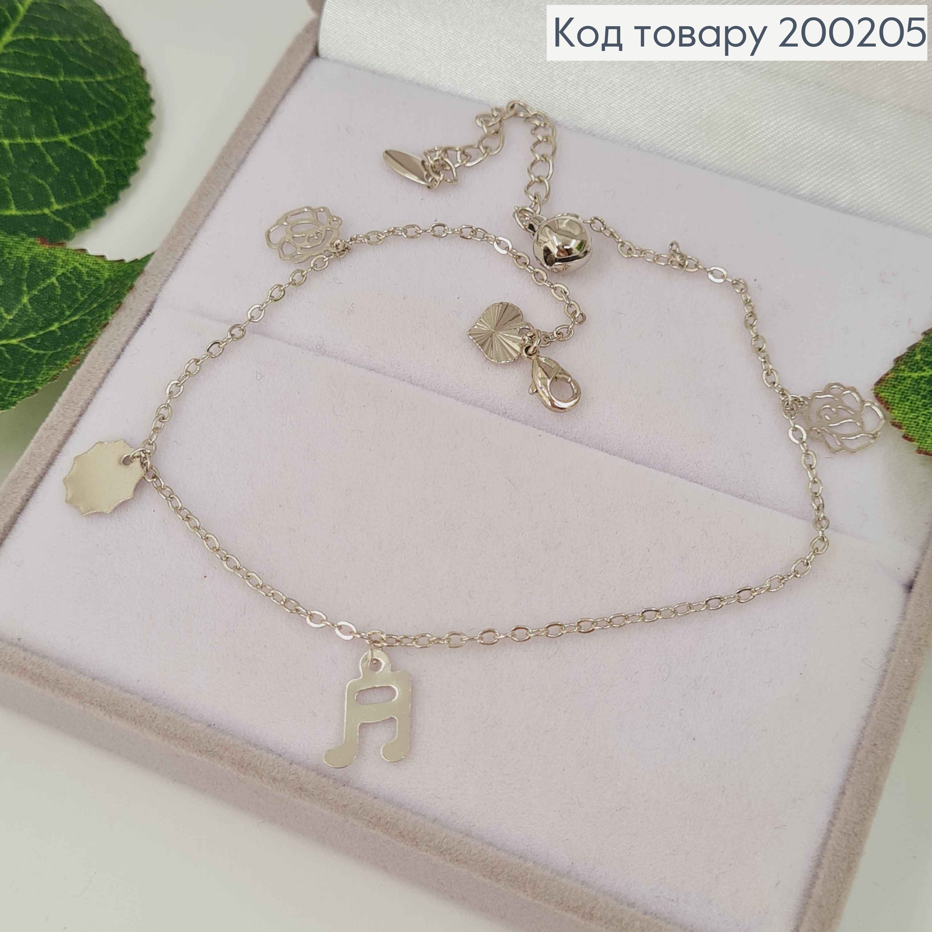 Браслет на ногу, родимый, с фигурными подвесками и нотой, дл. 23+4см, Xuping