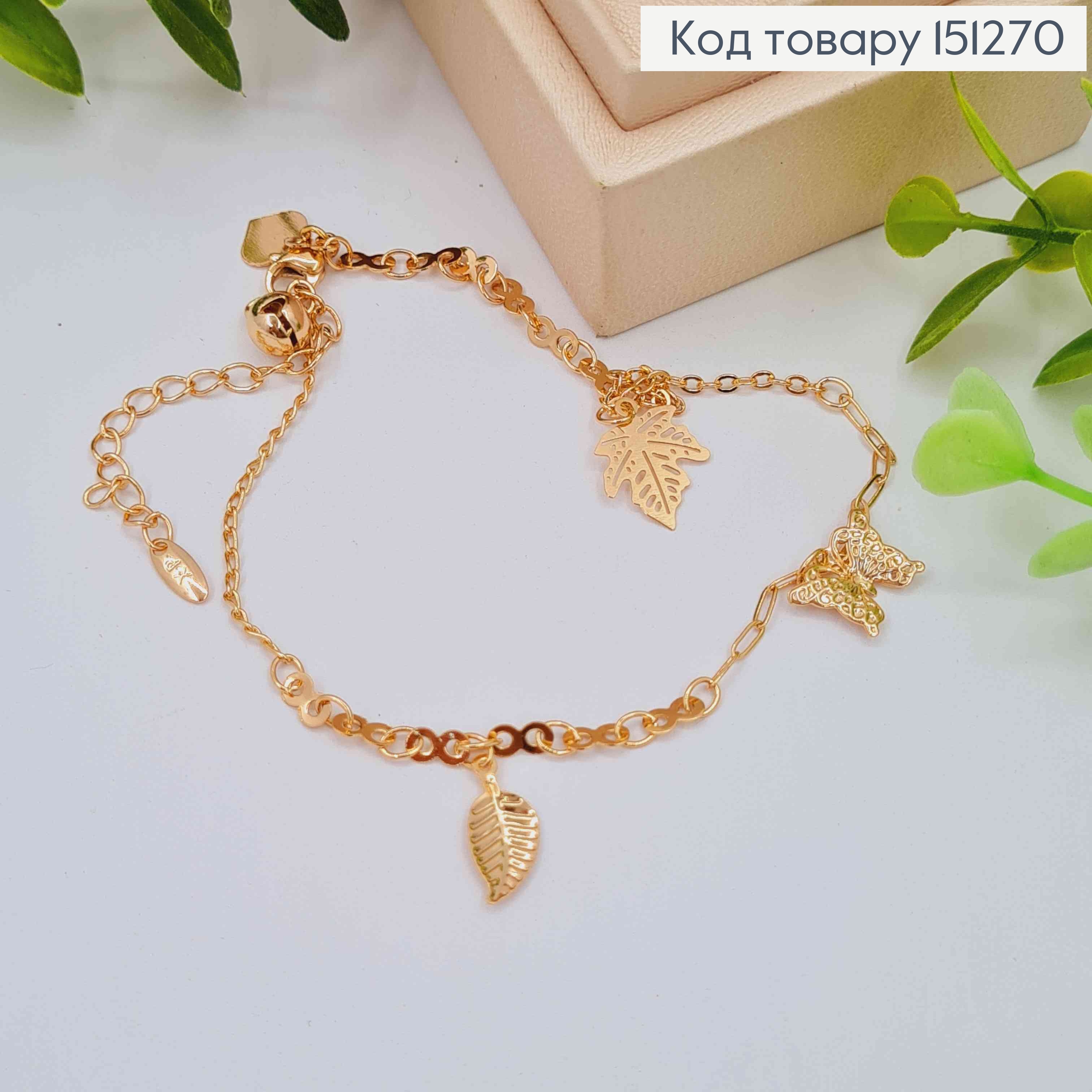 Браслет на ногу с Листочка-Бабочка-Листочка, длина 24+5см, Xuping 18К