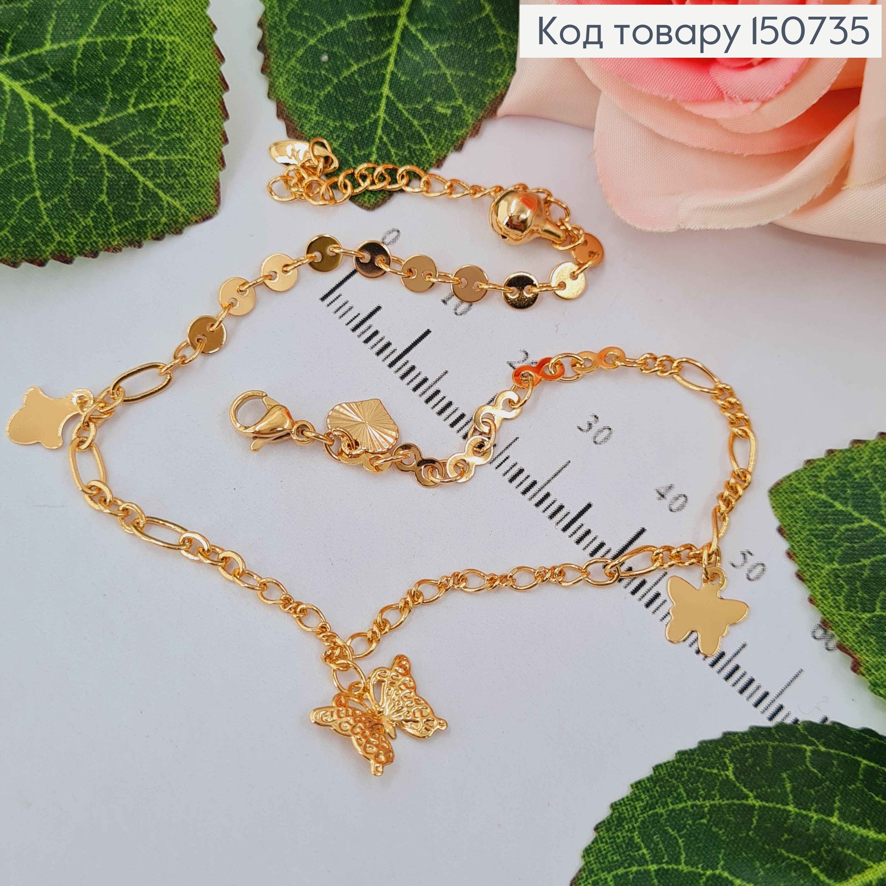 Браслет на ногу, с подвесками бабочкой и акулкой, 24+4, Xuping 18K
