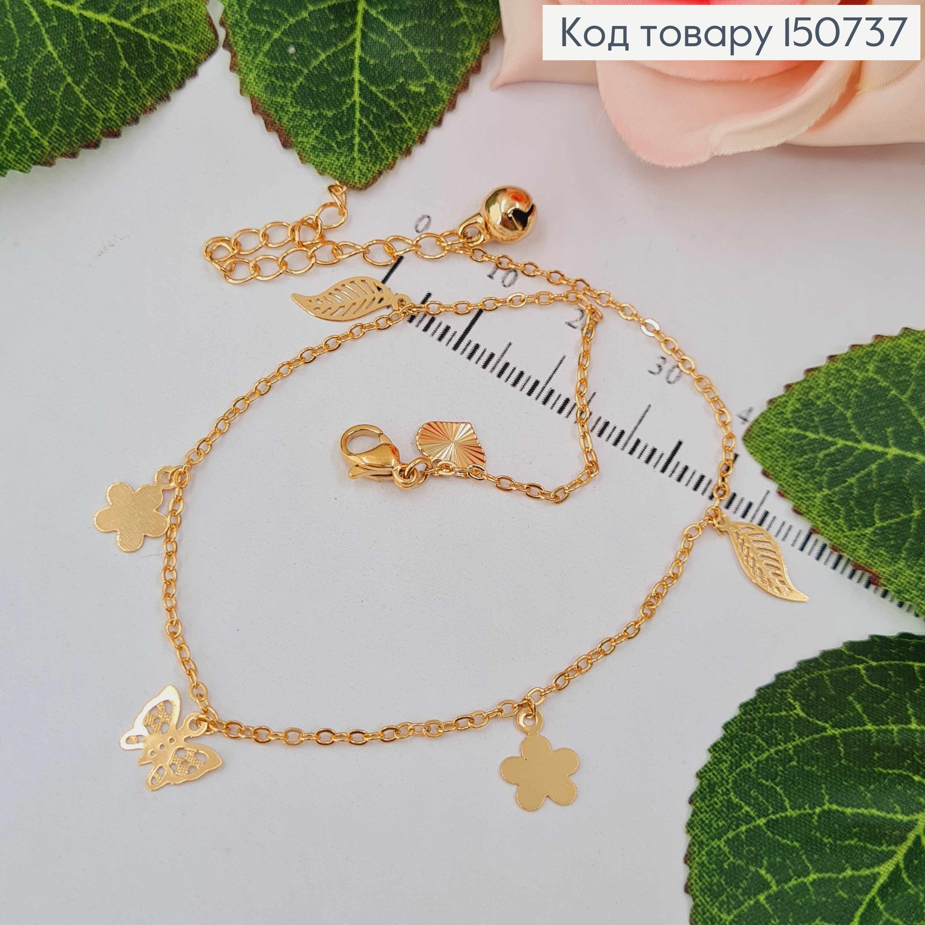 Браслет на ногу, с подвесками бабочкой и цветами, 23+5, Xuping 18K