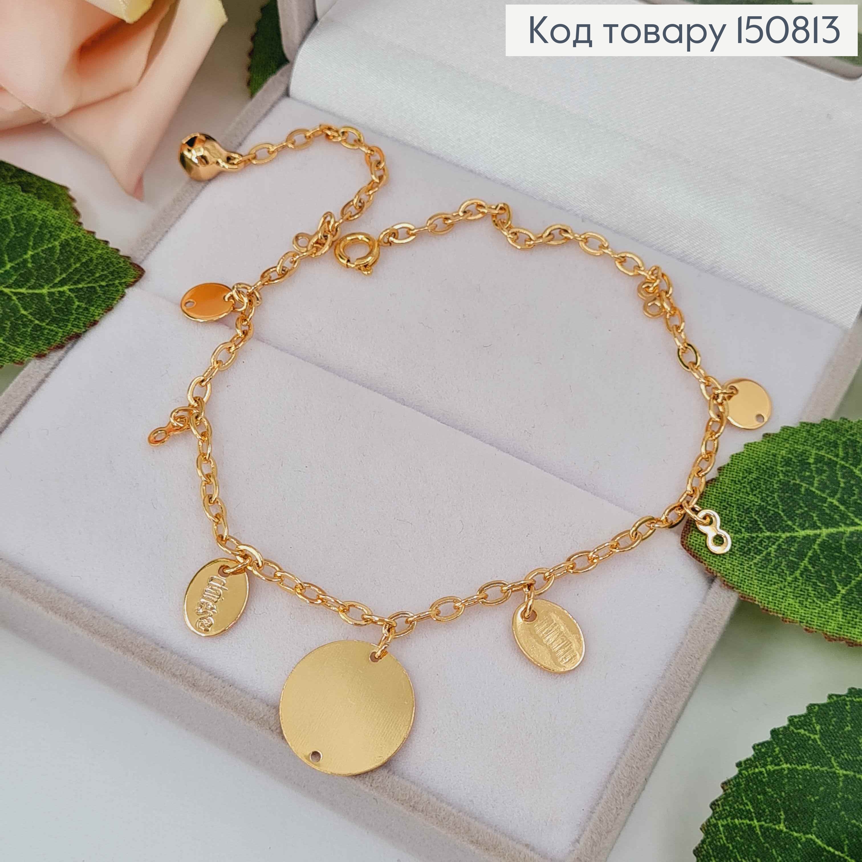 Браслет на ногу, с подвесками монетками разных размеров, длина 25см, Xuping 18K