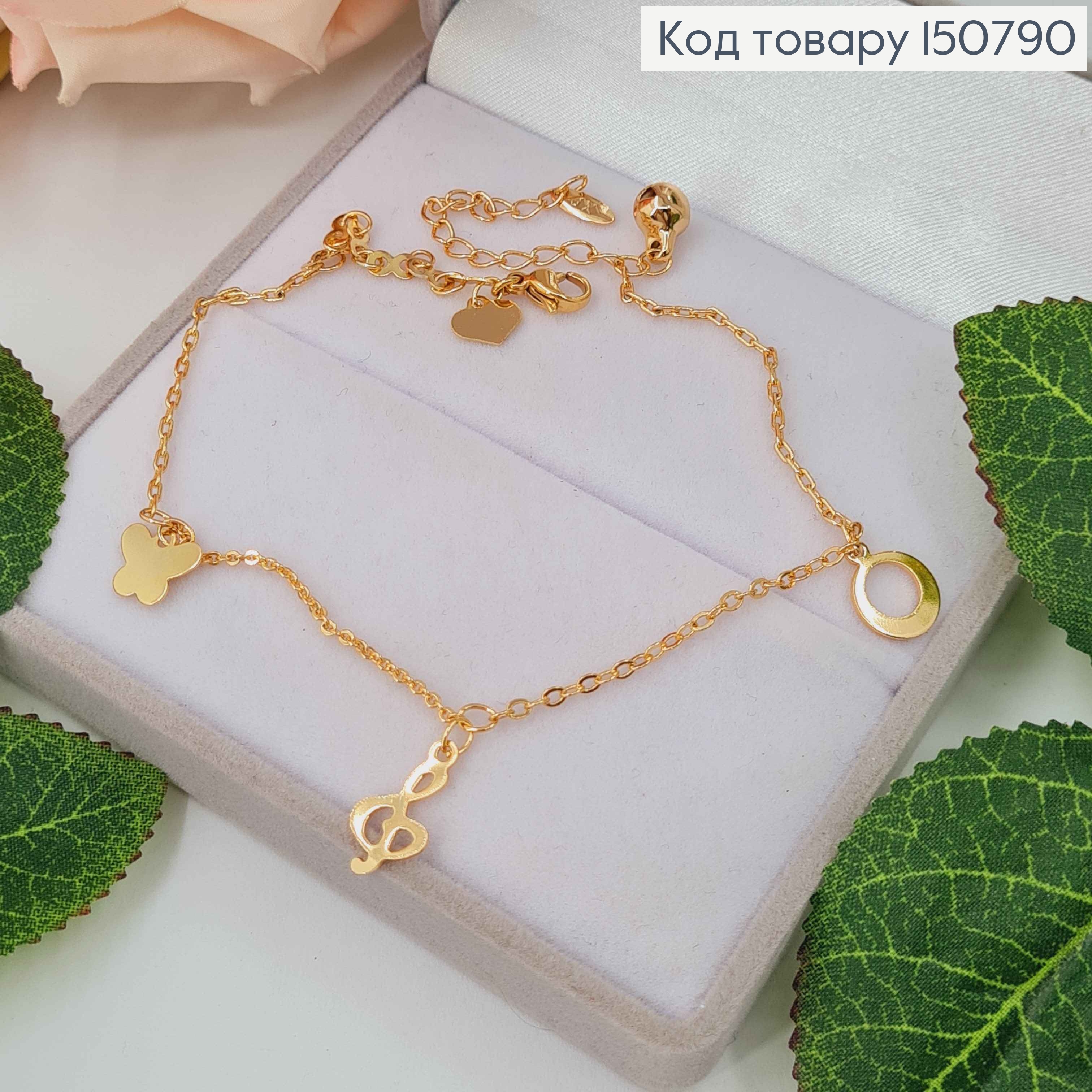 Браслет на ногу, с подвесками сердечком, скрипичный и бабочкой, дл. 23.5+5см, Xuping 18К
