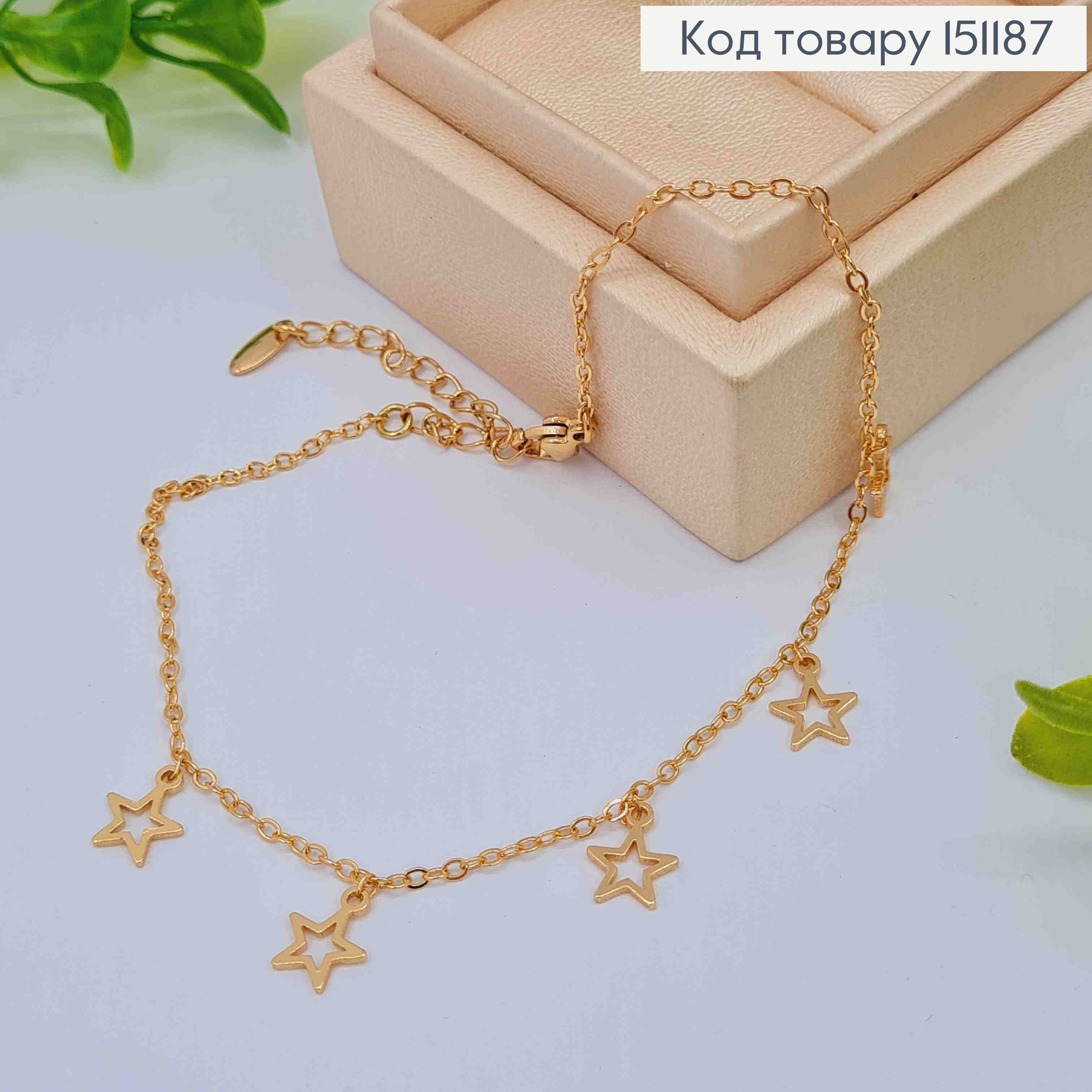 Браслет на ногу с подвесками "Звездочки", длина 22+6см, Xuping 18K