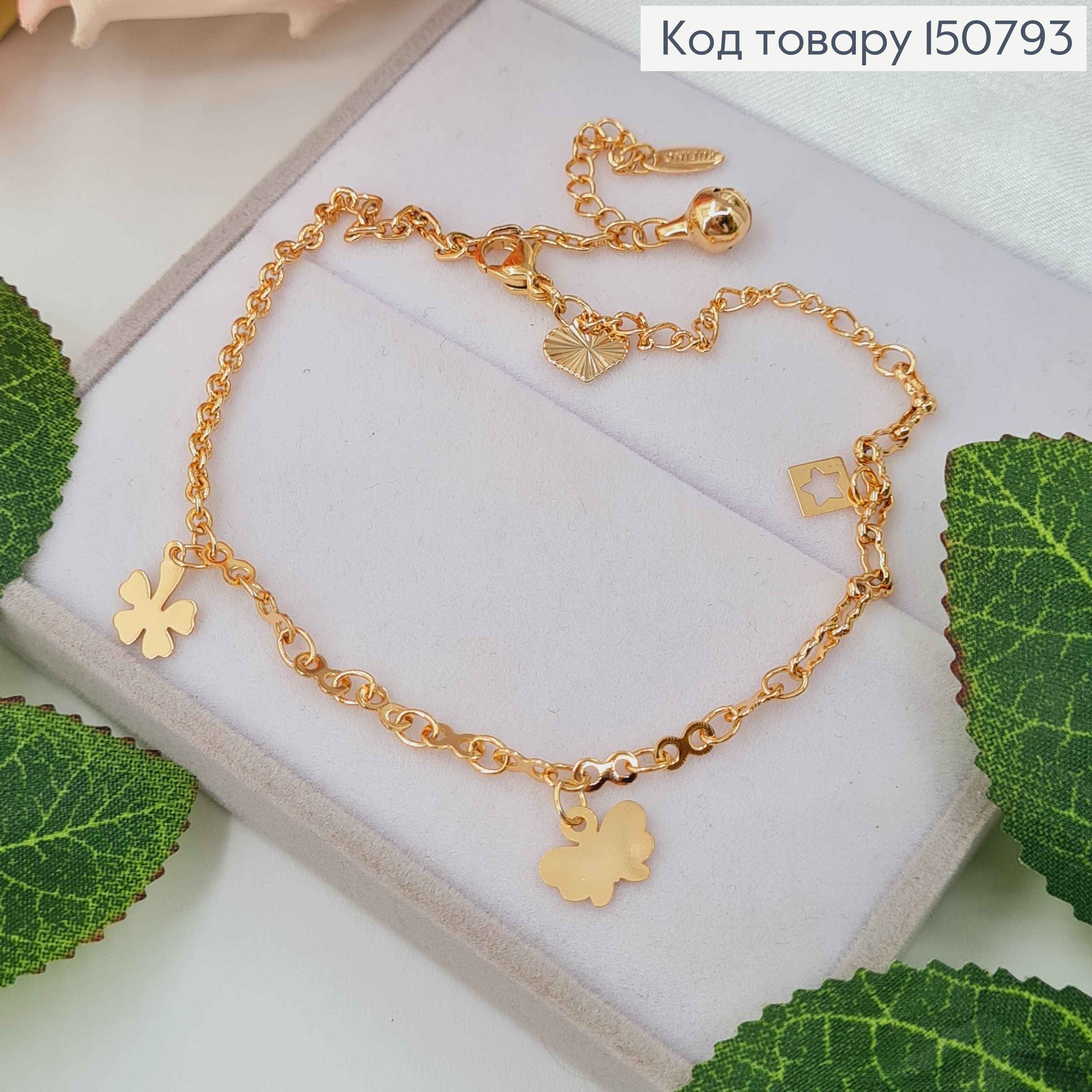 Браслет на ногу, с подвесками звездочкой, бабочкой и четырехлистником, дл.25+3см, Xuping 18К
