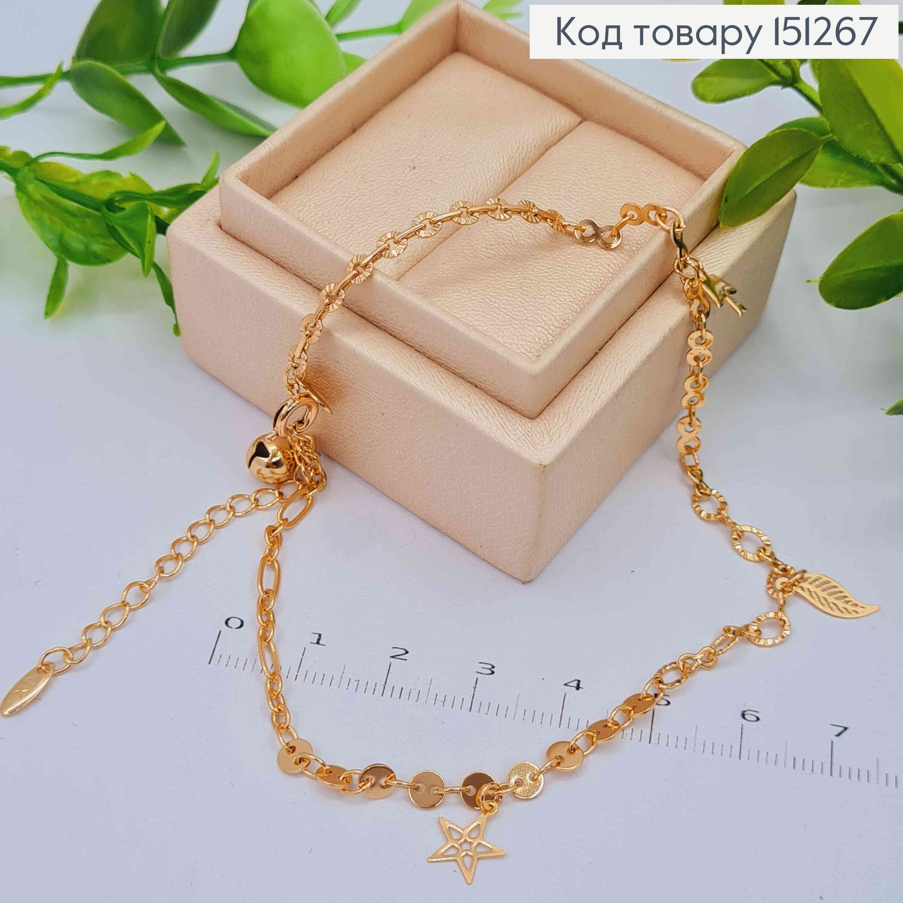 Браслет на ногу с Птичка-Листочек-Звездочка, длина 25+5см, Xuping 18К