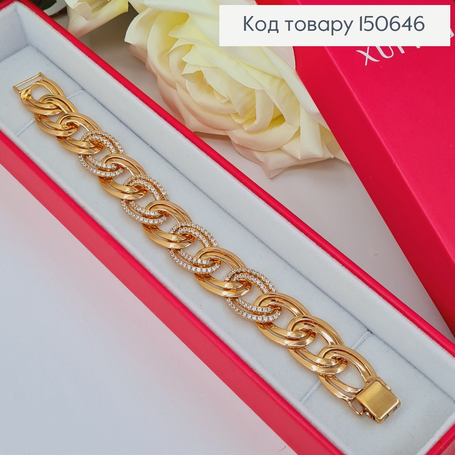 Браслет плетения фигурными пластинками в Блестящих камнях, длина 17+2см, Xuping 18K 151293 фото