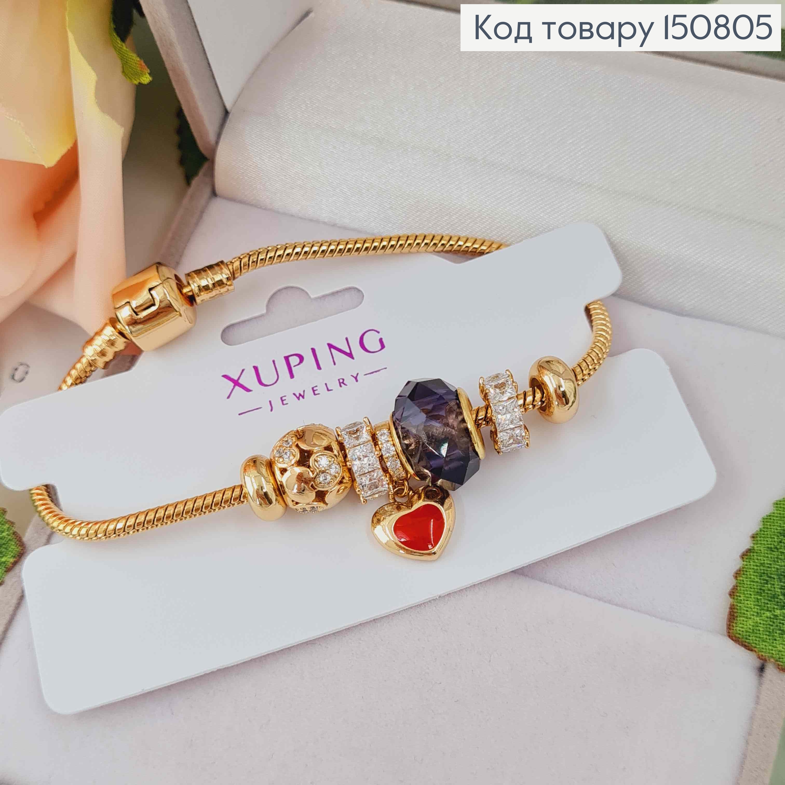 Браслет "Пандора" с Фиолетовым шармиком, с подвеской сердечком, длиной 18см. Xuping 18K
