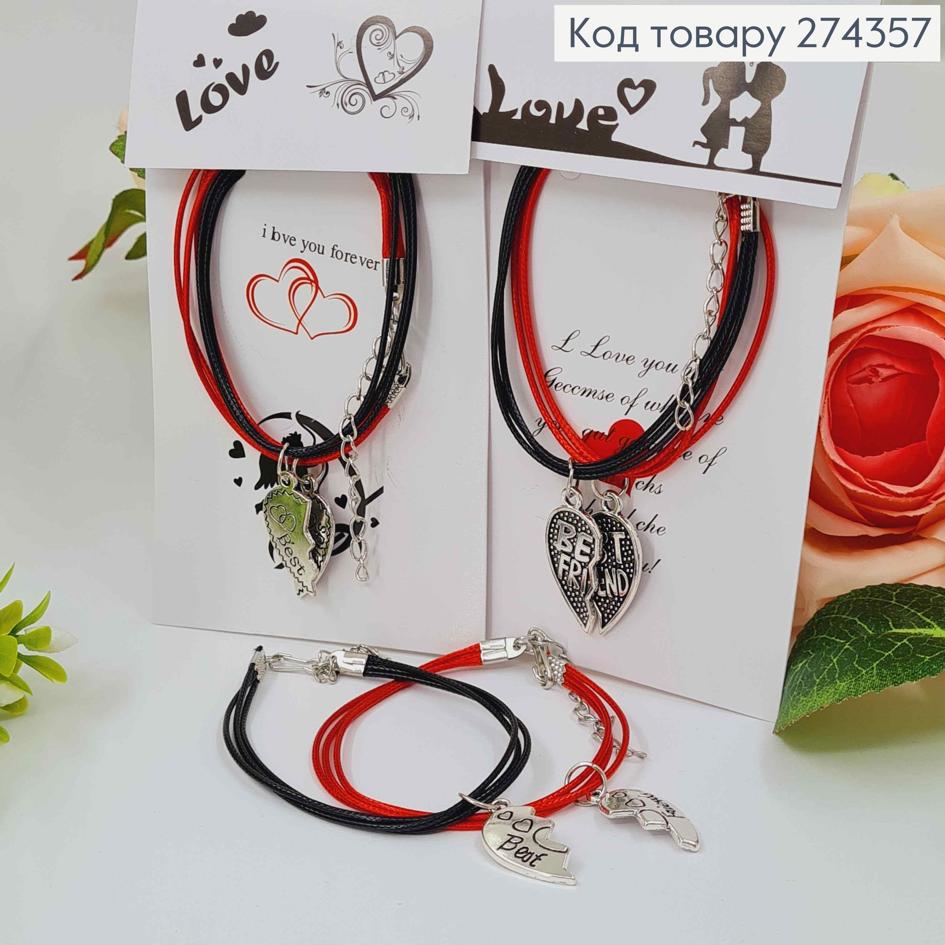 Браслет плетеный, черный/красный глянцевый, 2шт. BEST FRIENDS, в ассорт.
