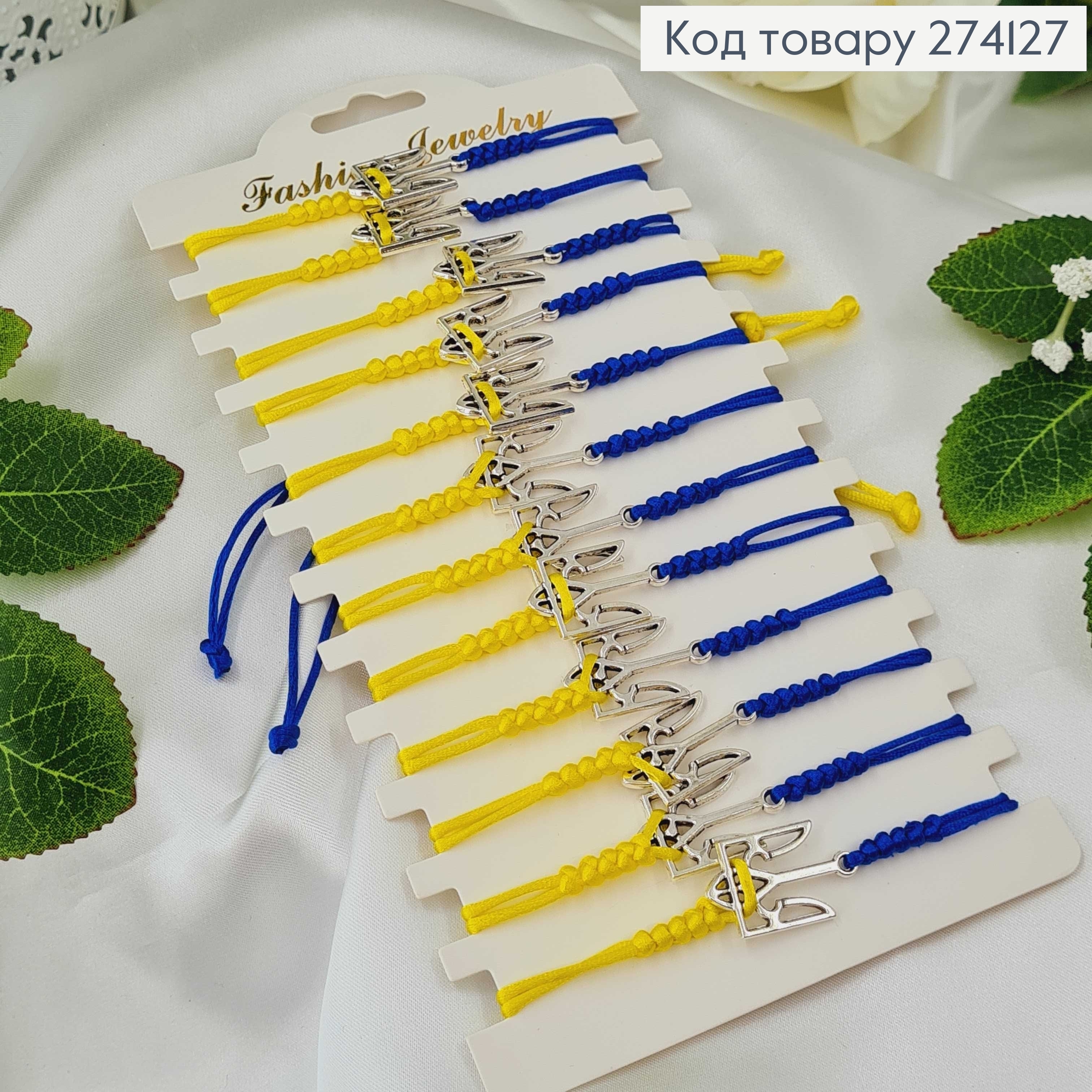 Браслет плетеный, сине-желтый, СЕРДЕЦКО УКРАИНА, на затяжке 274404 фото
