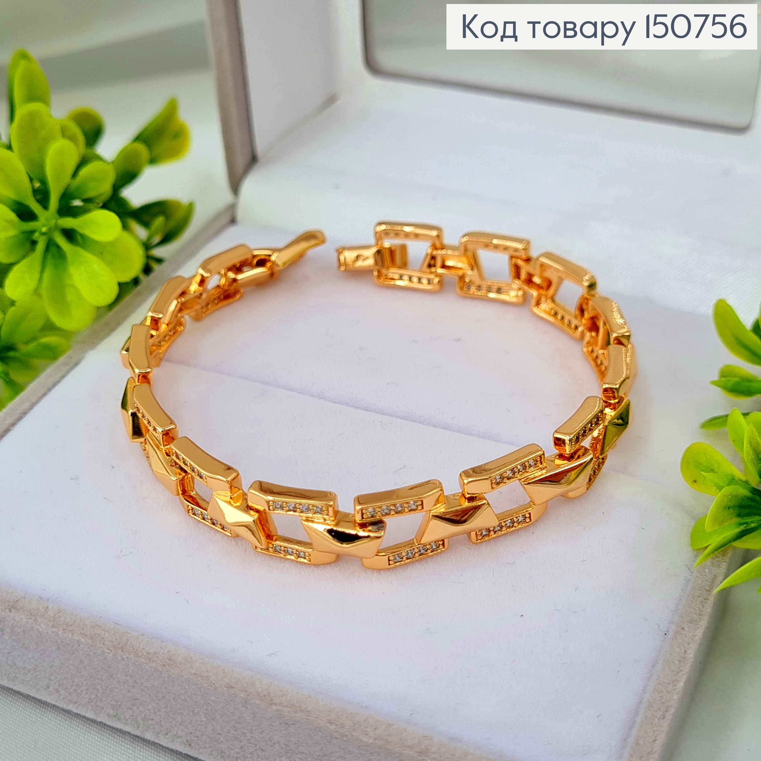 Браслет плетения фигурными пластинками в Блестящих камнях, длина 17+2см, Xuping 18K 151293 фото