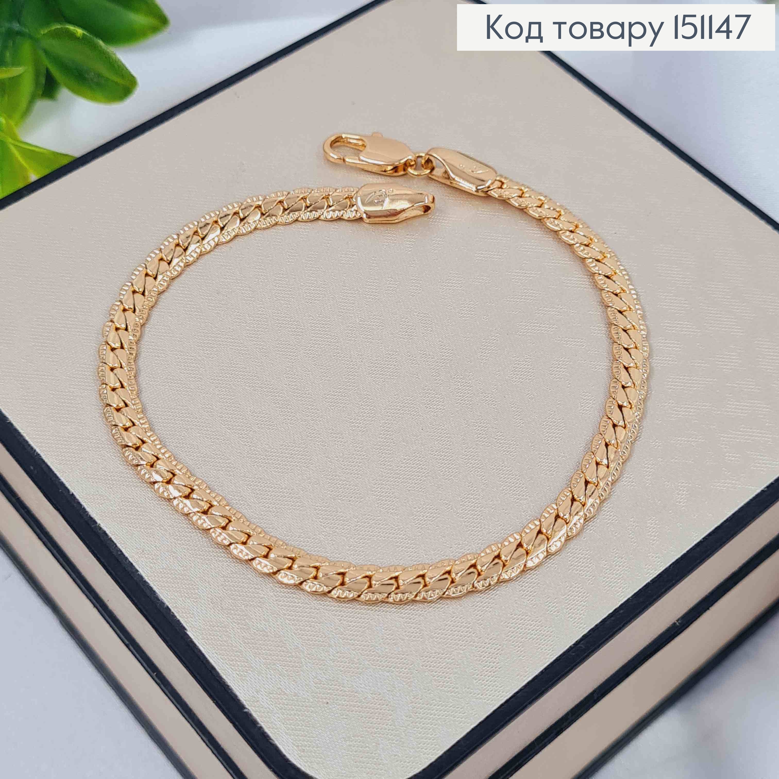 Браслет плетения КОСИЧКА с тиснением по краям, ширина 4мм, длина 19см, Xuping 18K